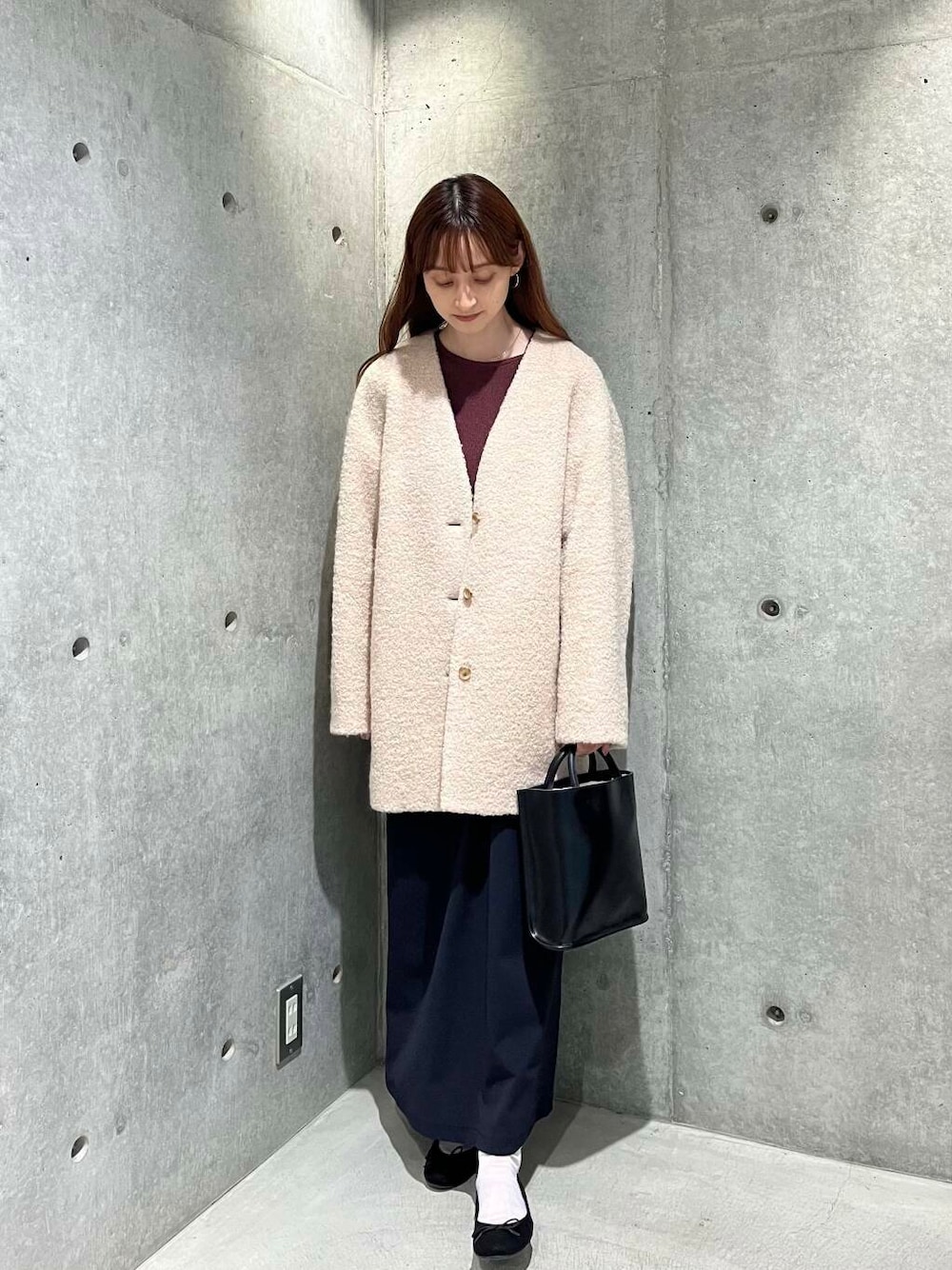 ミディ丈なのでカジュアル、キレイめどちらにも合わせやすいデザインですよ♪