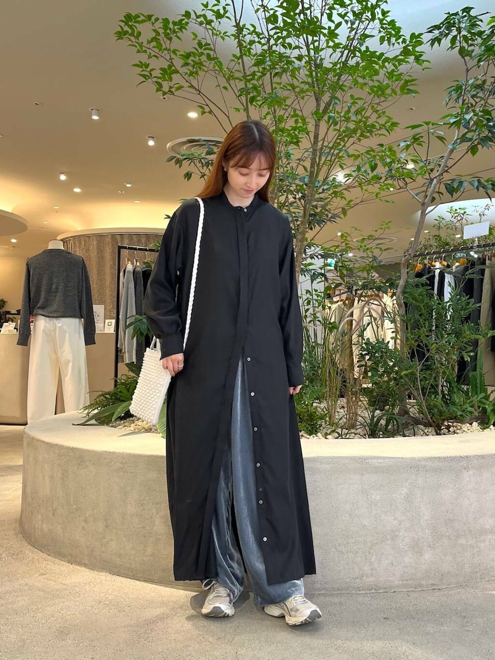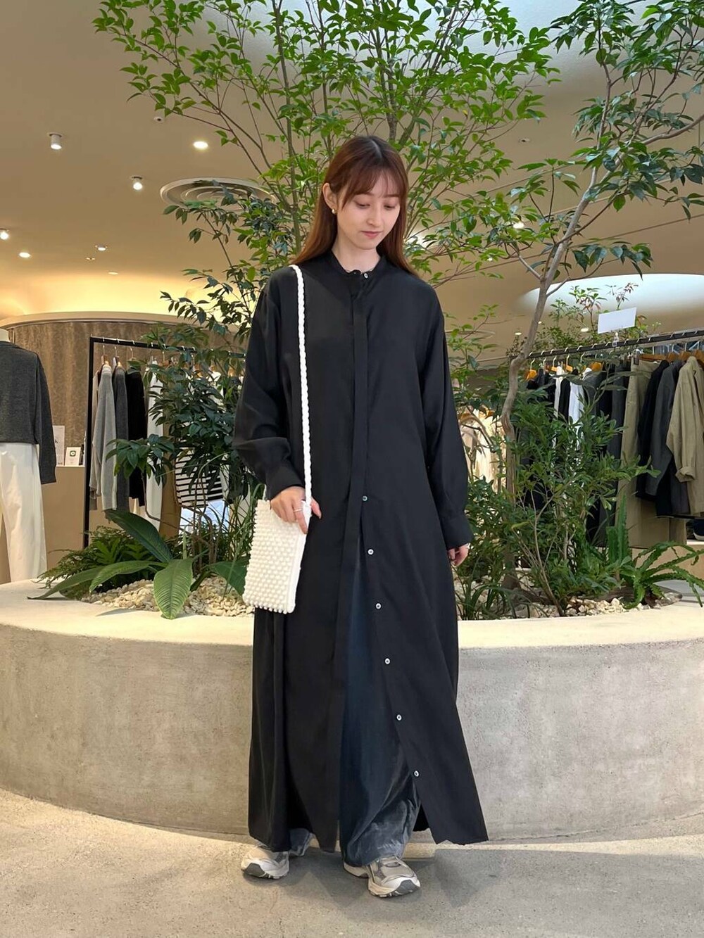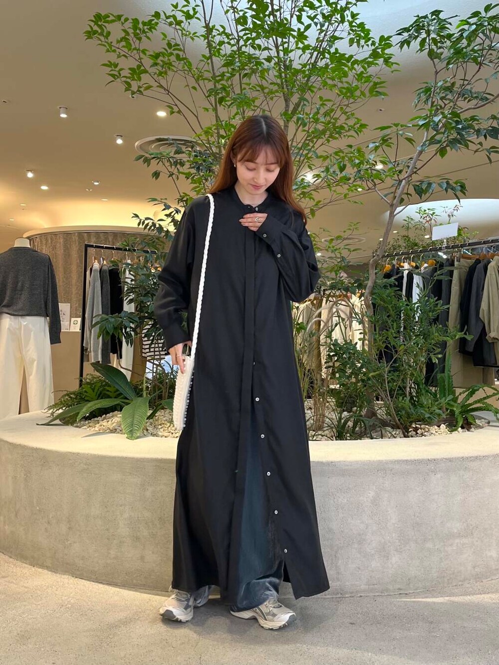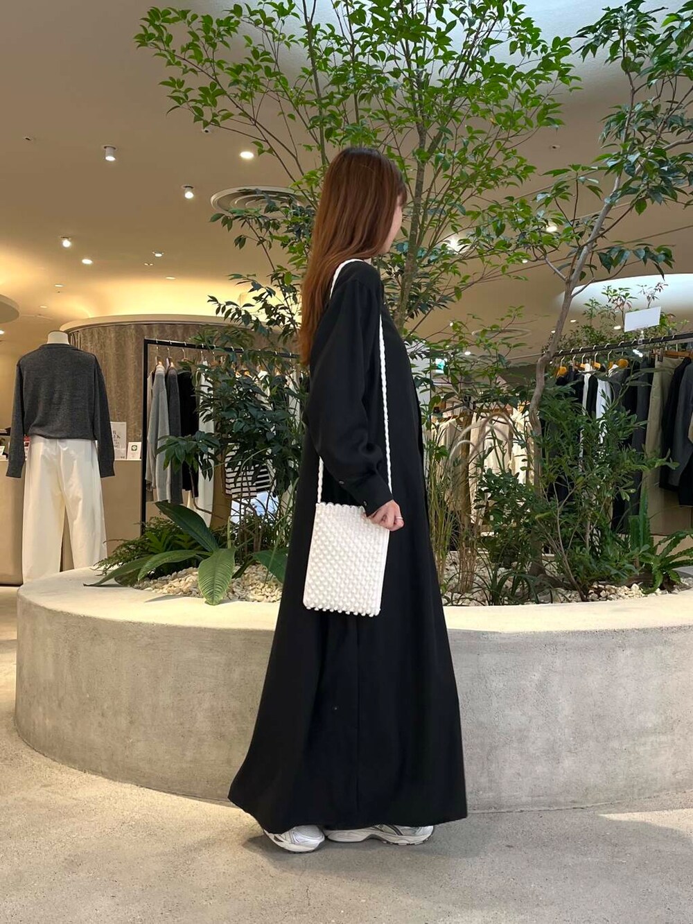 さりげない光沢感で一枚ではもちろん、パンツとレイヤードして頂くと雰囲気も変わり着回しも◎