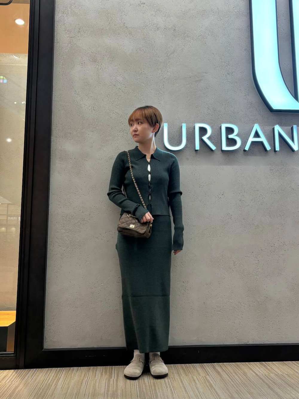 落ち着いたグリーンで普段のコーデに取り入れやすい色味です😉