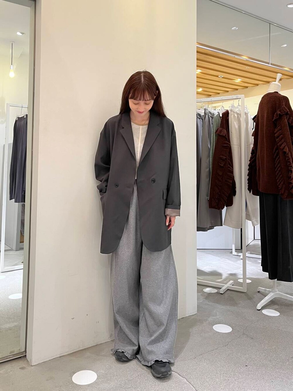 ウール混の裾のフリルが可愛いワイドパンツで秋冬にぴったりです◎