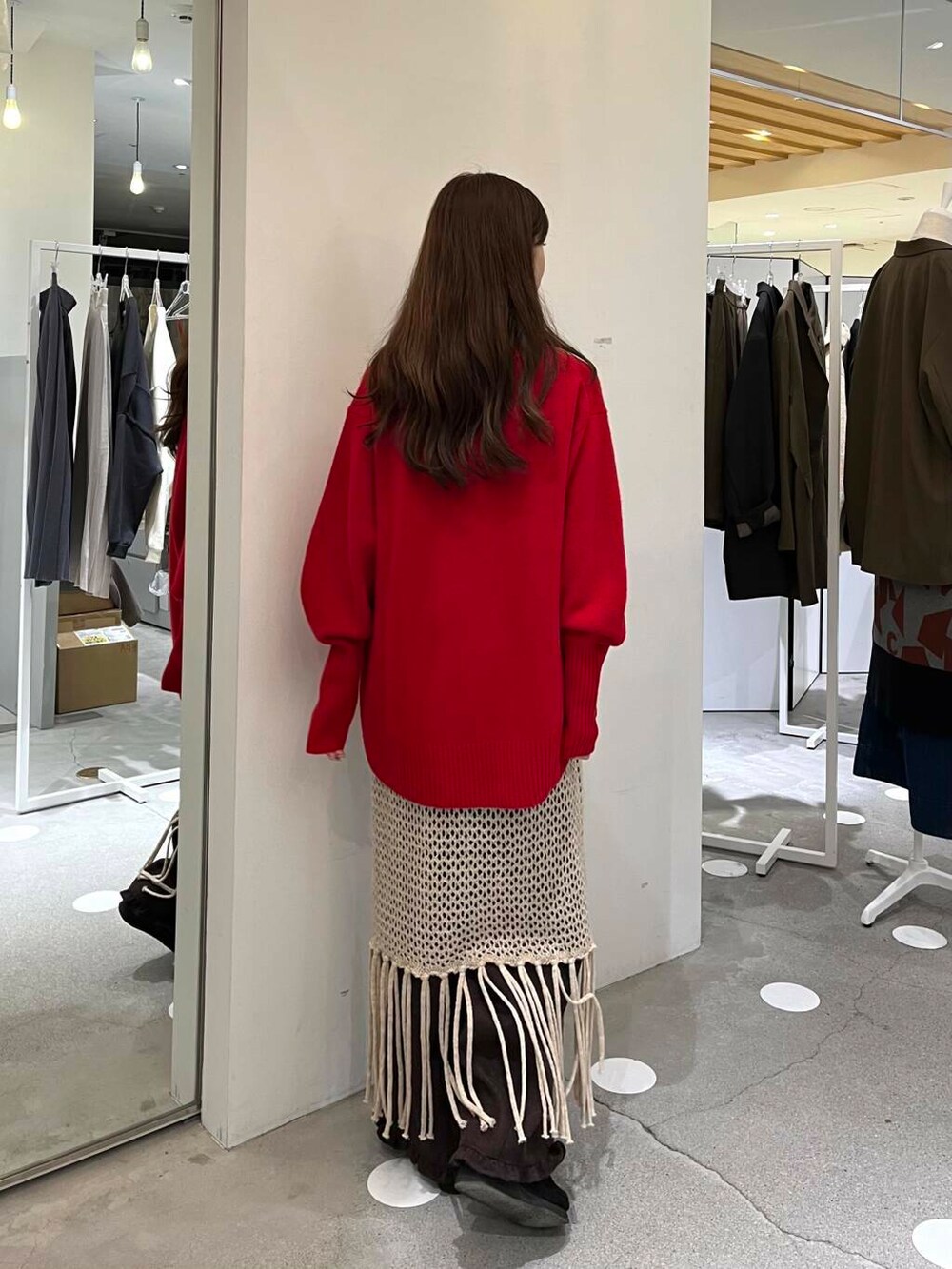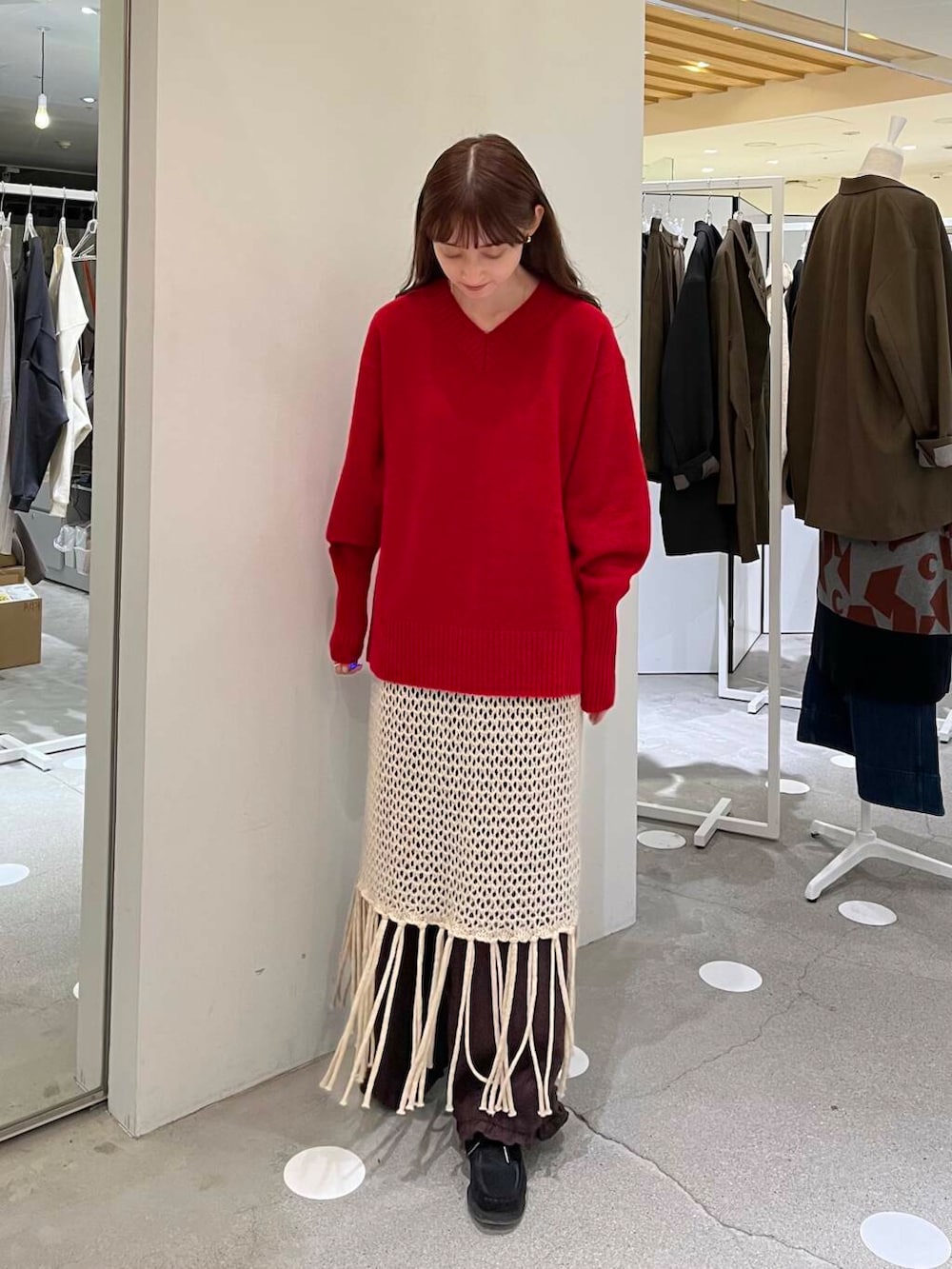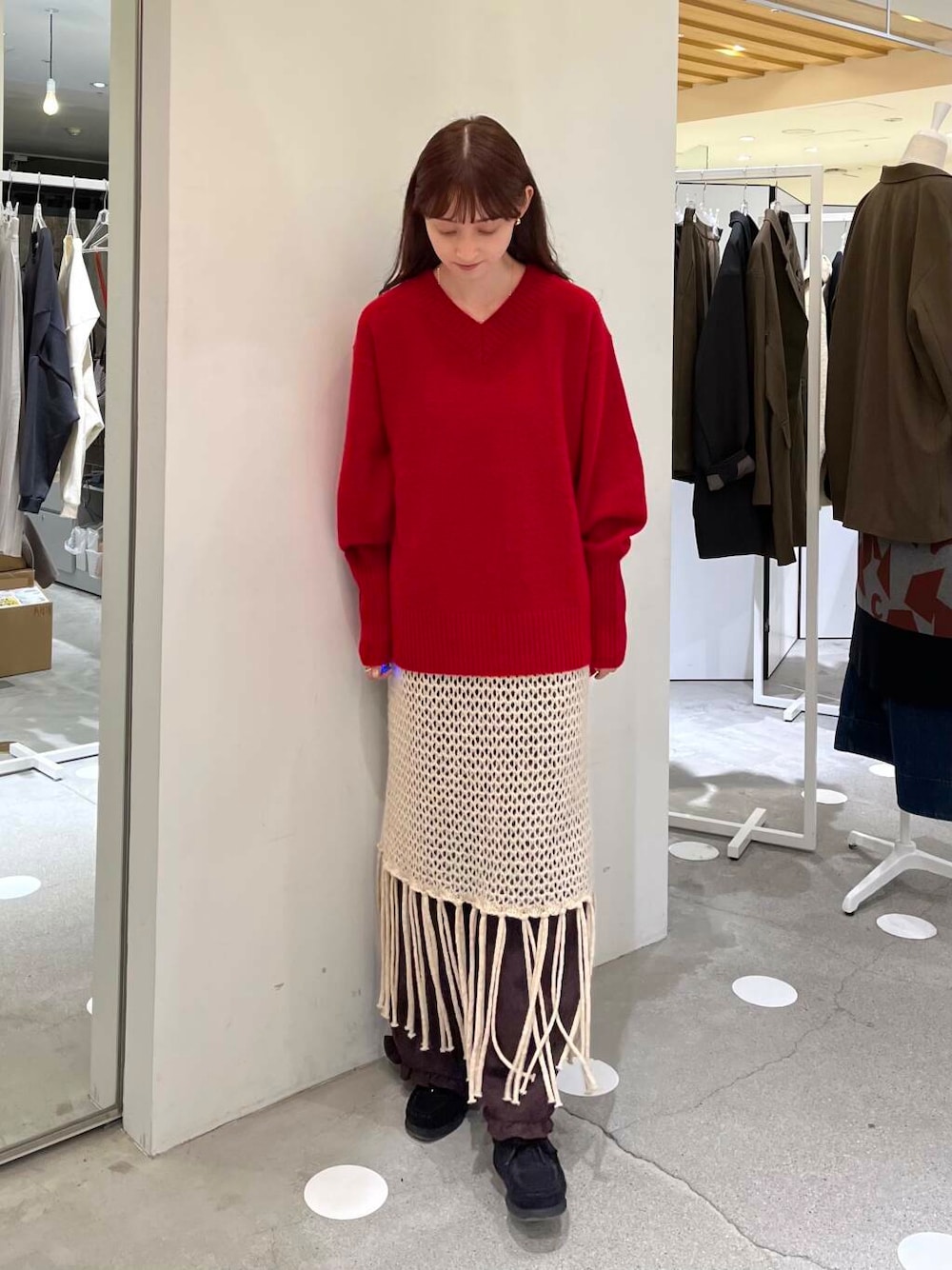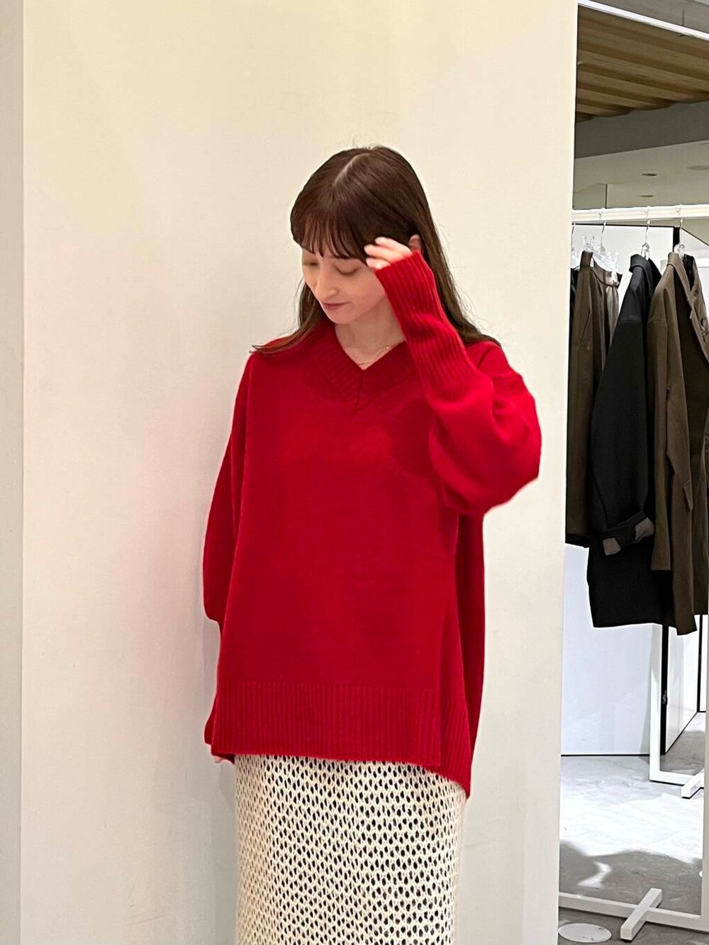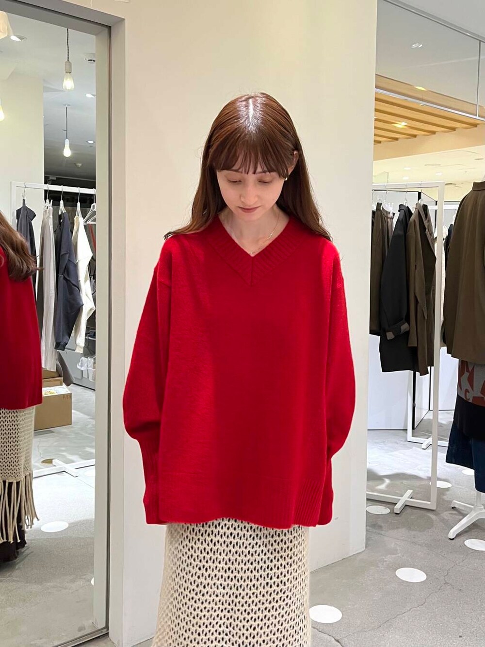 浅めのVネックで後ろ下がりのデザインなので、どんなボトムスにも合わせやすいです♡