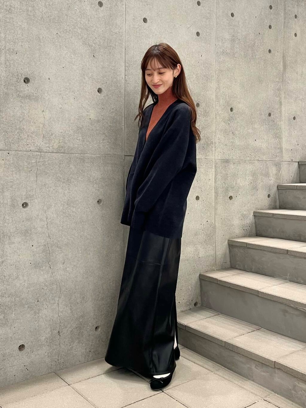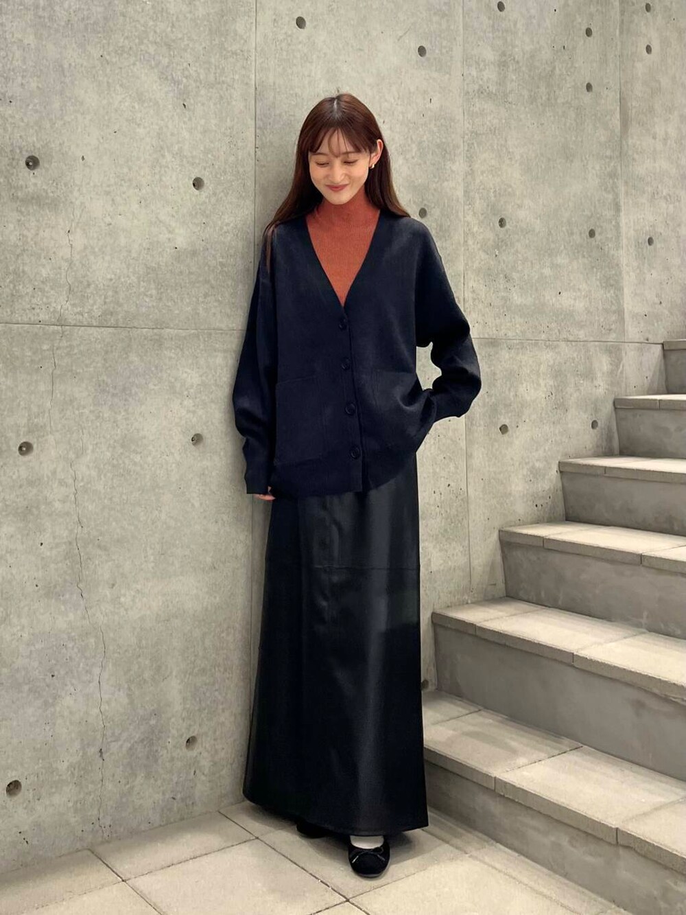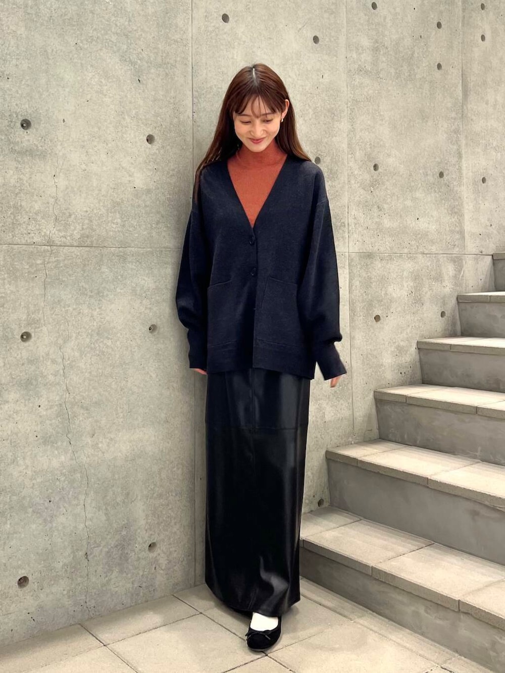 裏地付きなのでタイツも合わせやすく、落ち感のあるシルエットなのでキレイめな印象に✨