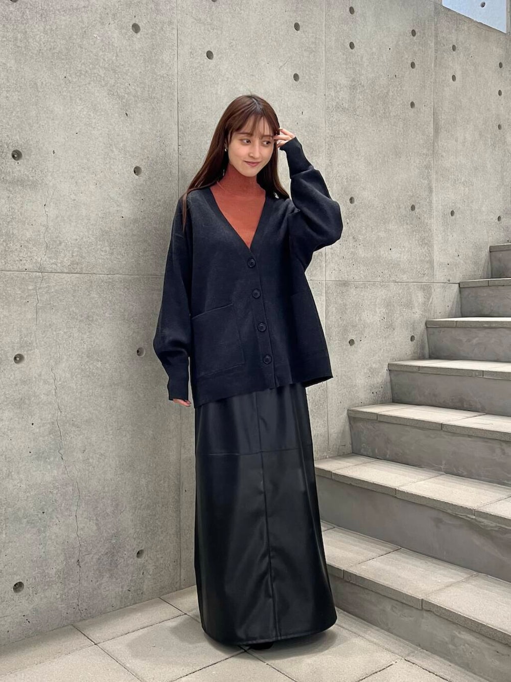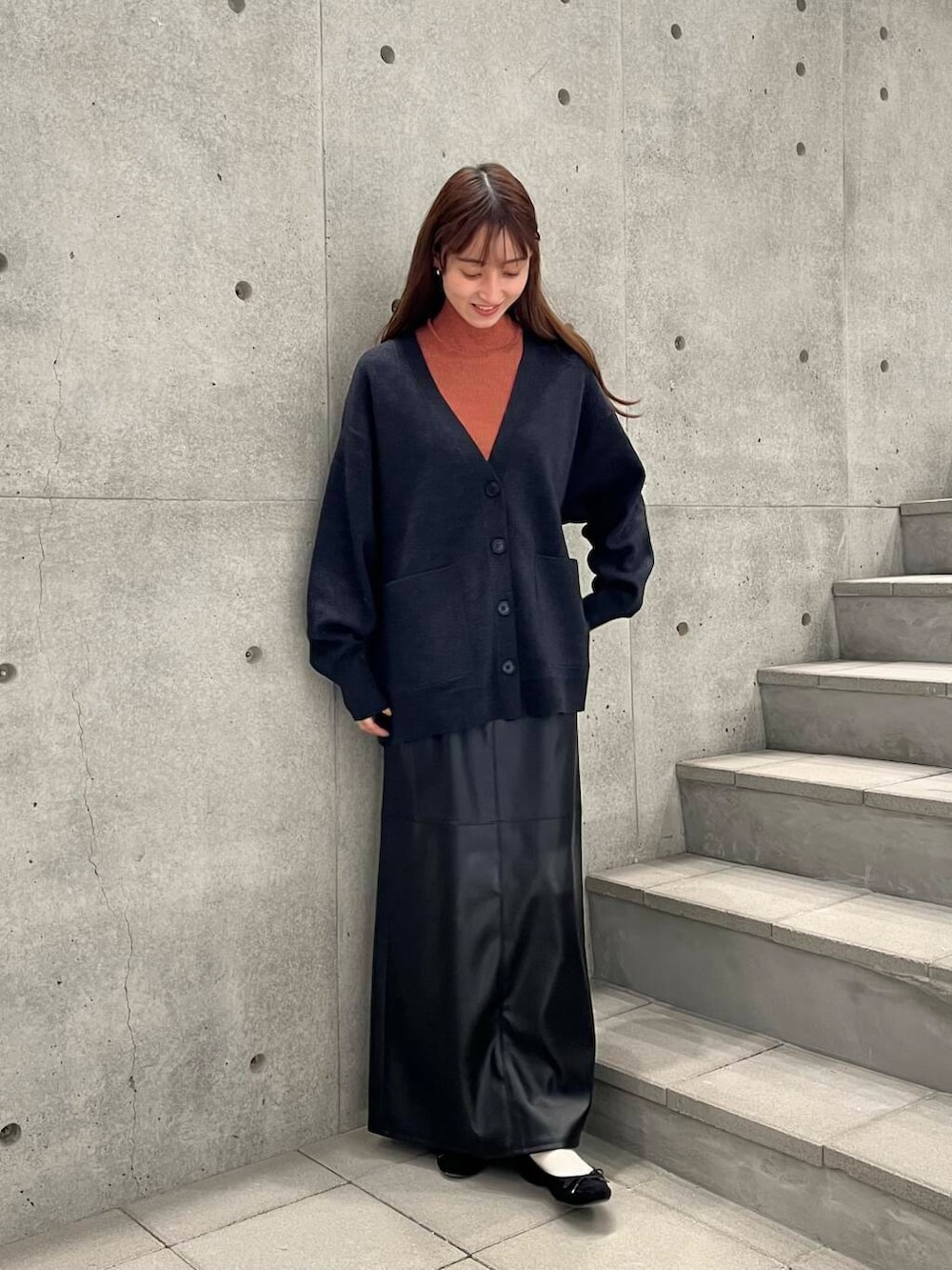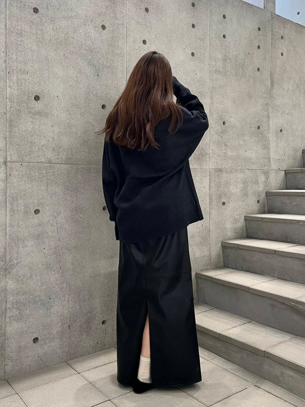 裏地付きなのでタイツも合わせやすく、落ち感のあるシルエットなのでキレイめな印象に✨