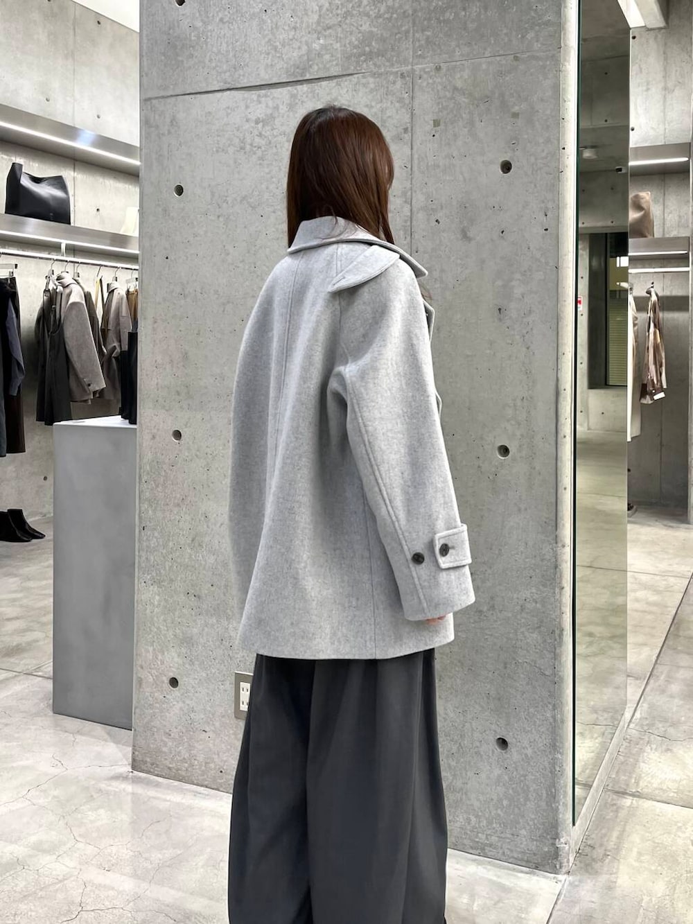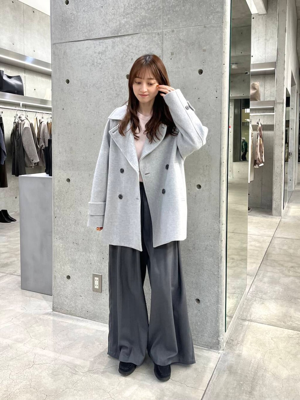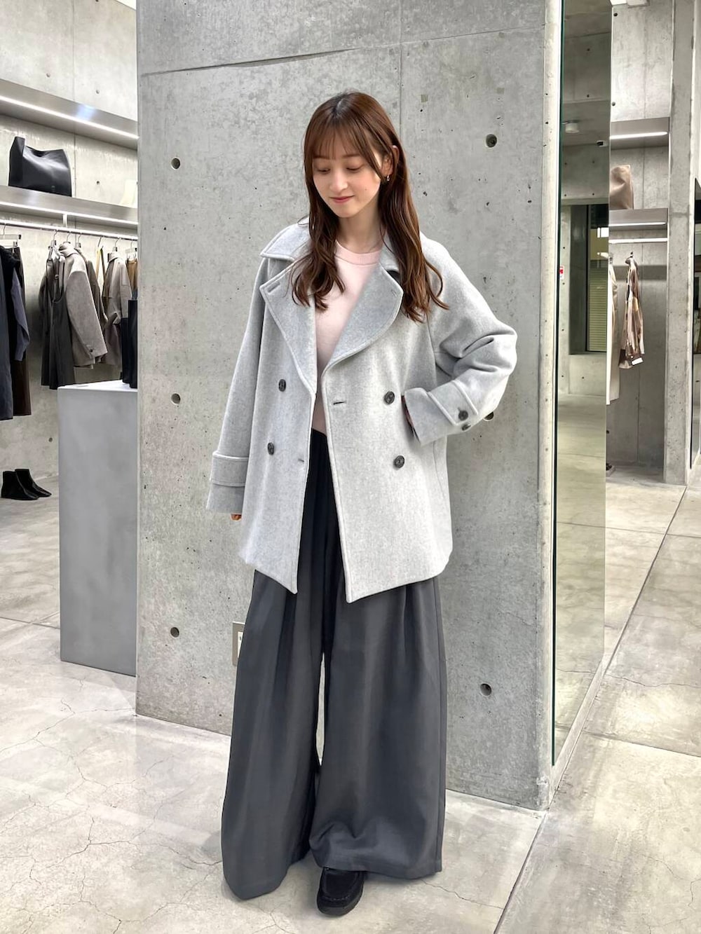 グレーのワントーンにピンクのニットが映えます♡