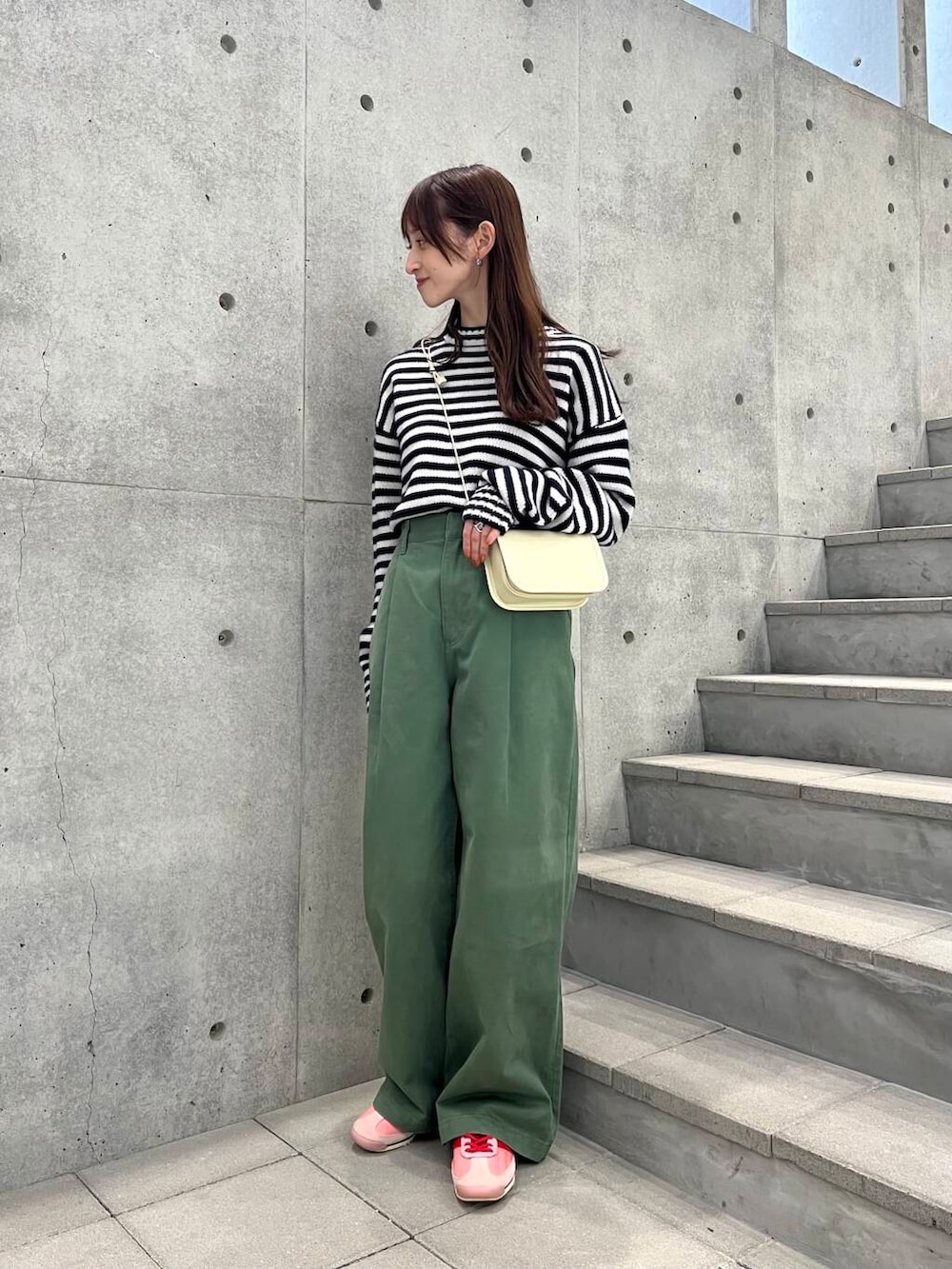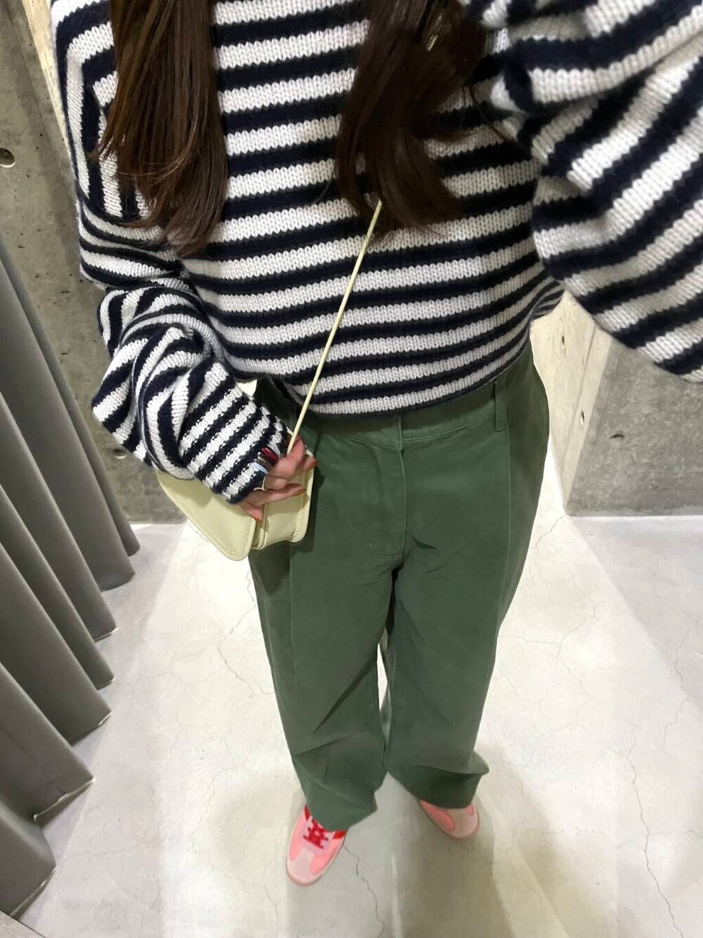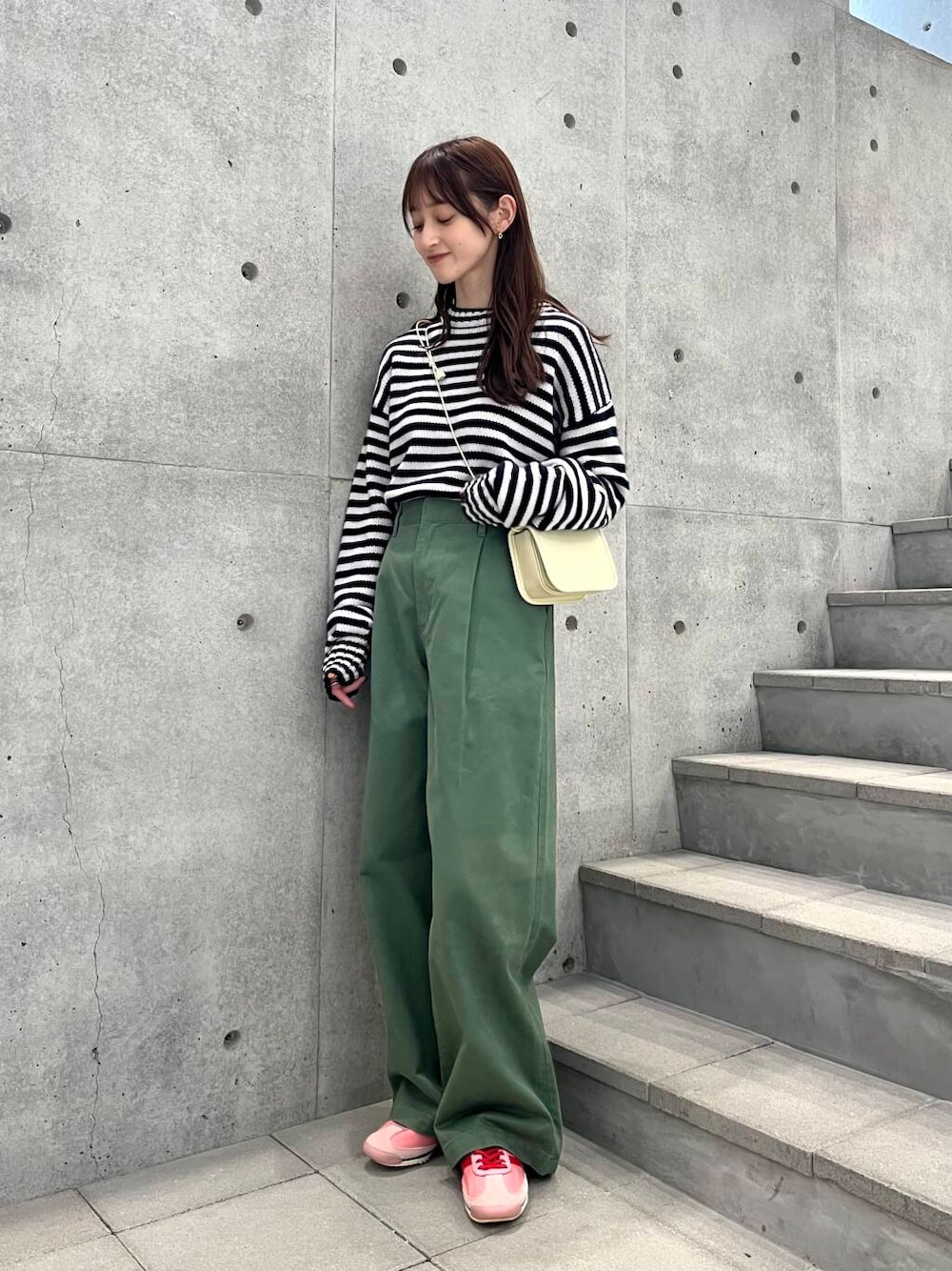 まだ肌寒いので、extreme cashmereのボーダーニットと合わせました🤍