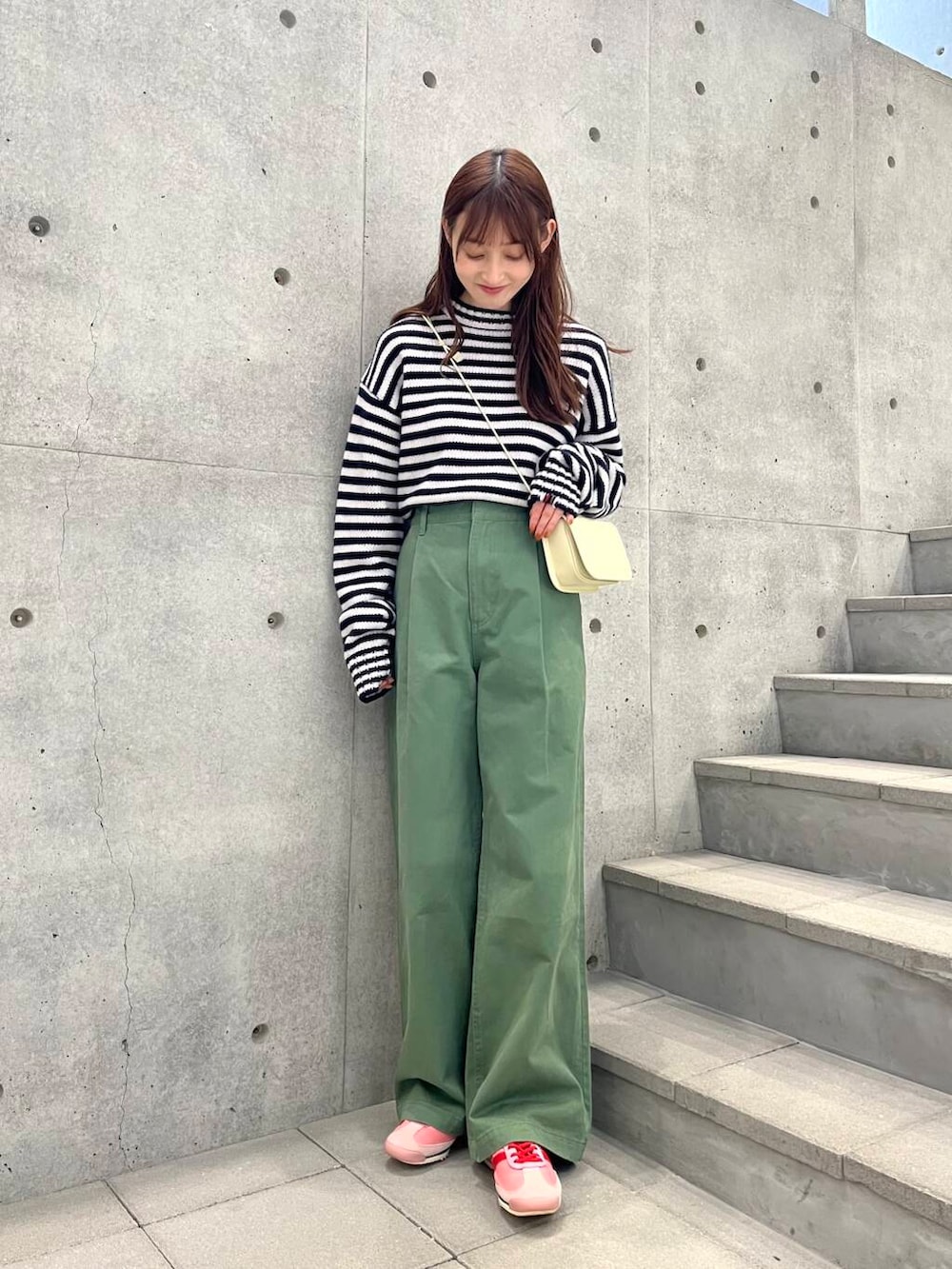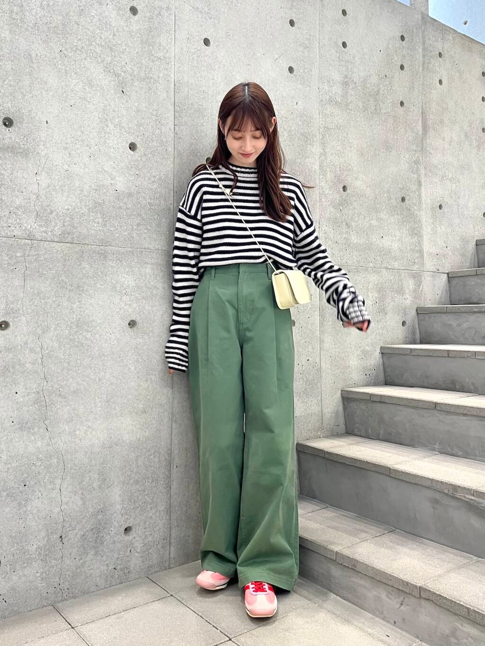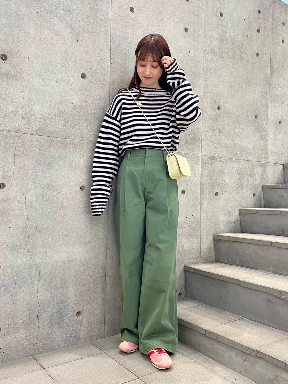 まだ肌寒いので、extreme cashmereのボーダーニットと合わせました🤍