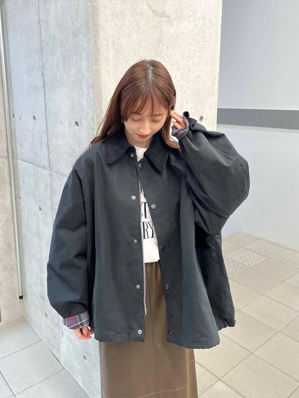 オーバーサイズ感が程よく、裾にもドローコードが付属しているのでボリュームの調節も可能です◎