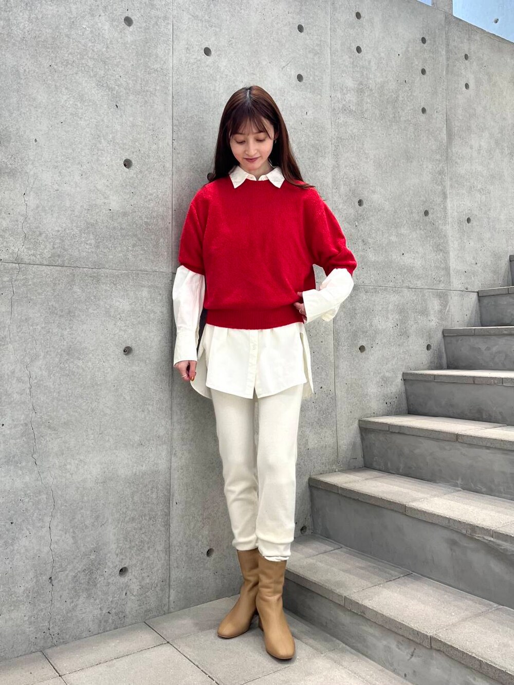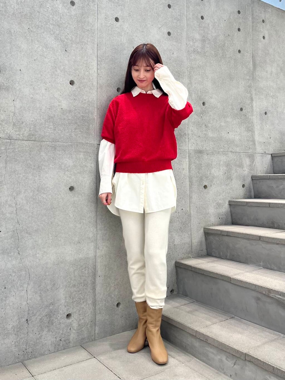 まだ肌寒いので、シャツと合わせました♡