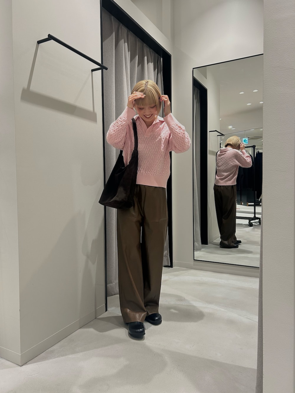 フェイクレザーパンツは柔らかい質感で、ウエストも嬉しいゴム仕様✨履き心地最高です!