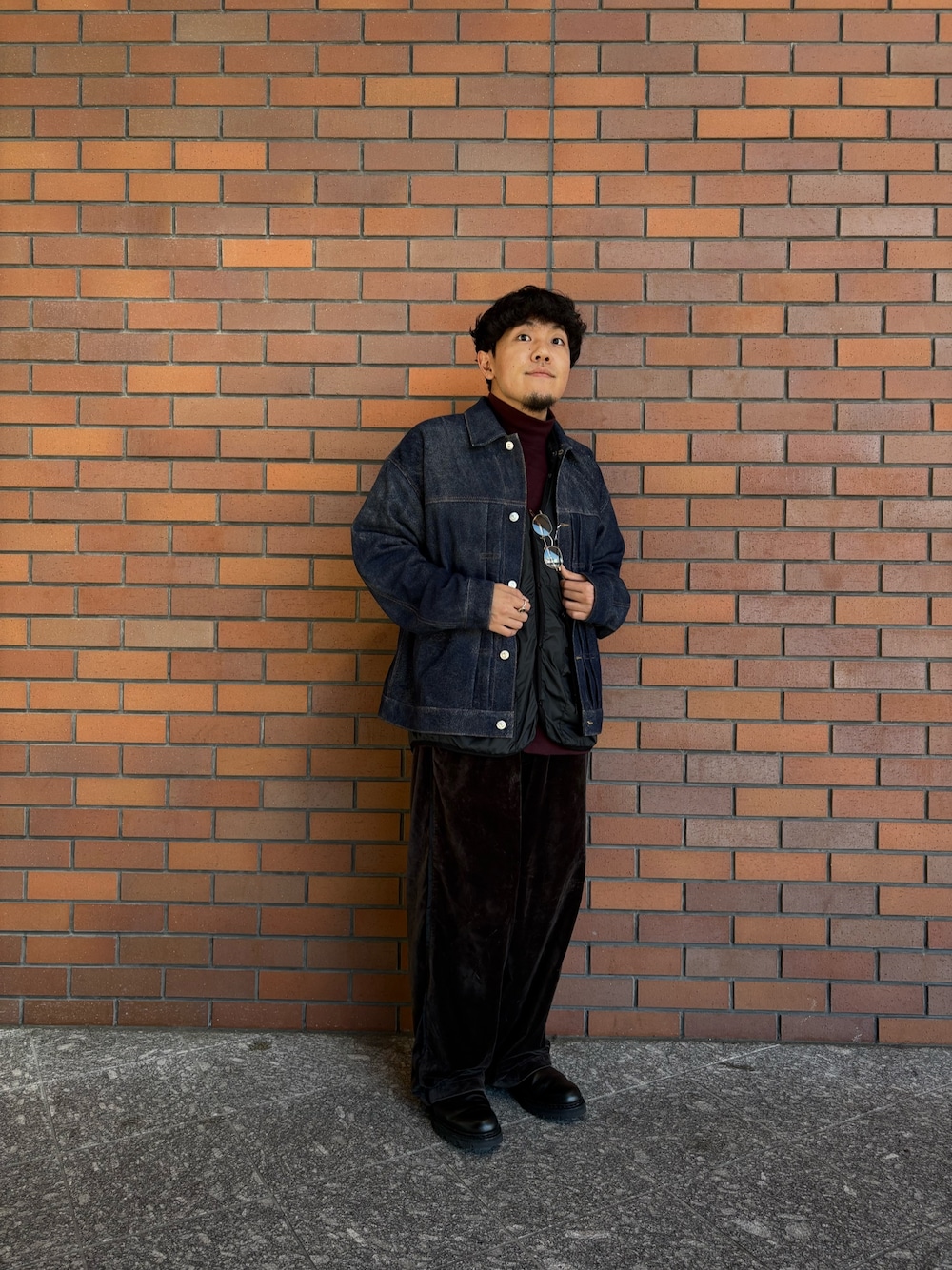 お尻まで隠れるオーバーサイズで袖をひと曲げして羽織ると重い印象になりません🔶🔺
