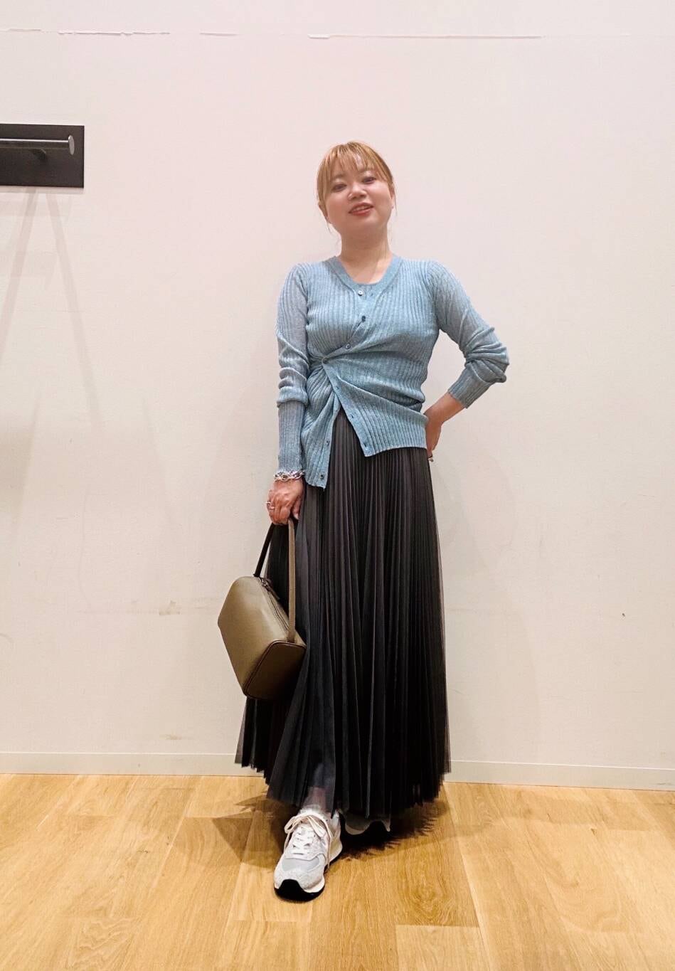 リブニットのタンクトップとカーディガンはラメが散りばめられた上品なデザイン☺️
