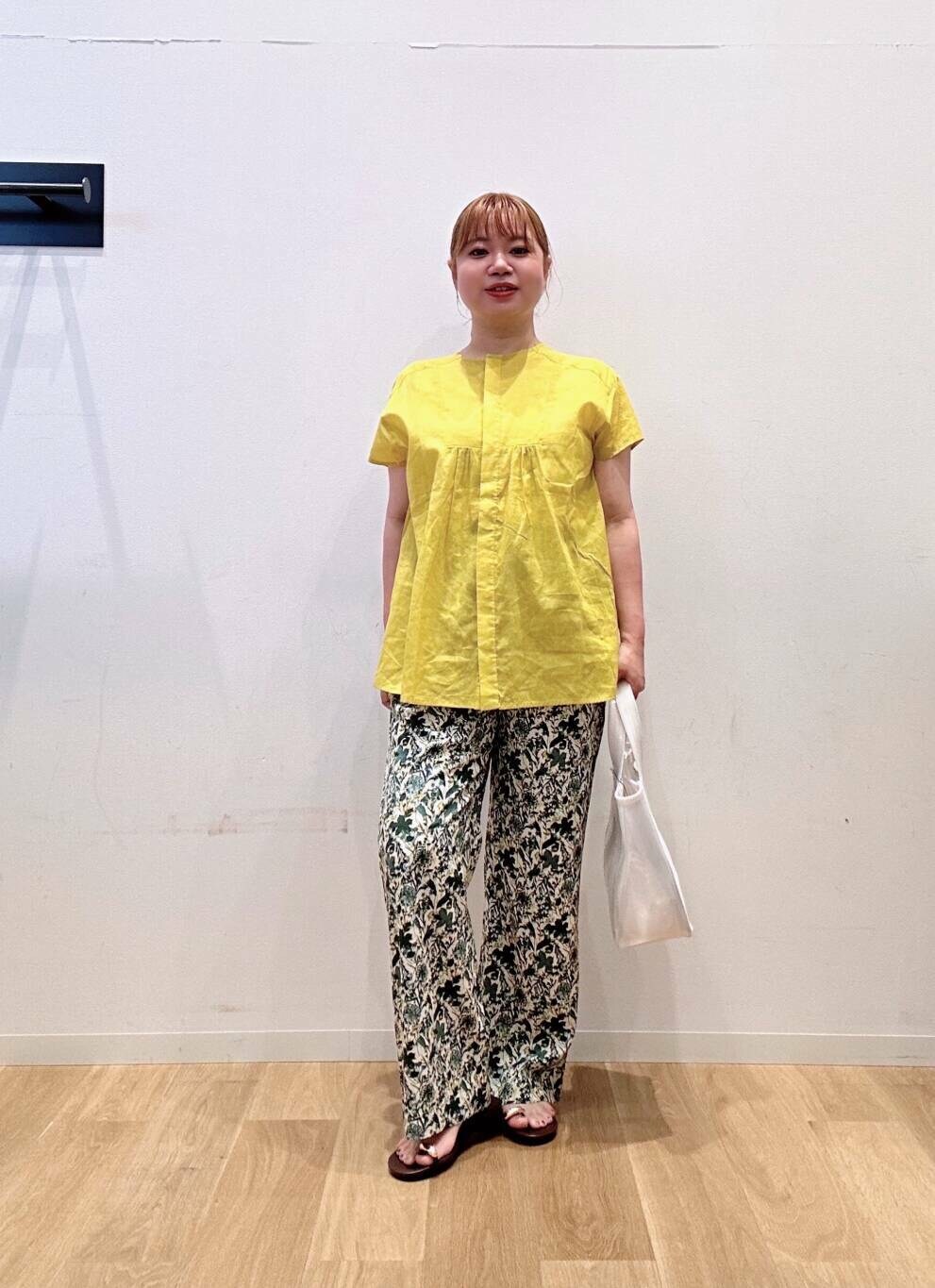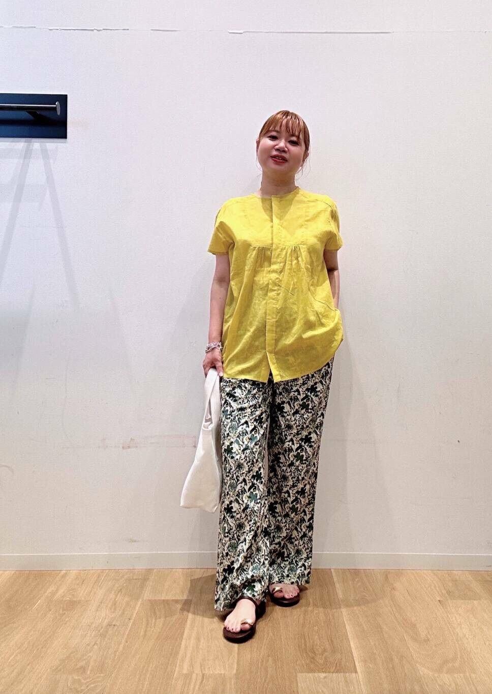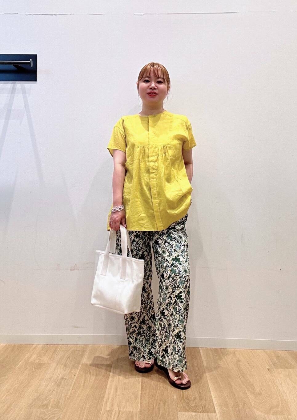 ブラウスは目を惹くイエローカラーが夏っぽくて可愛いです💕🩷🩷