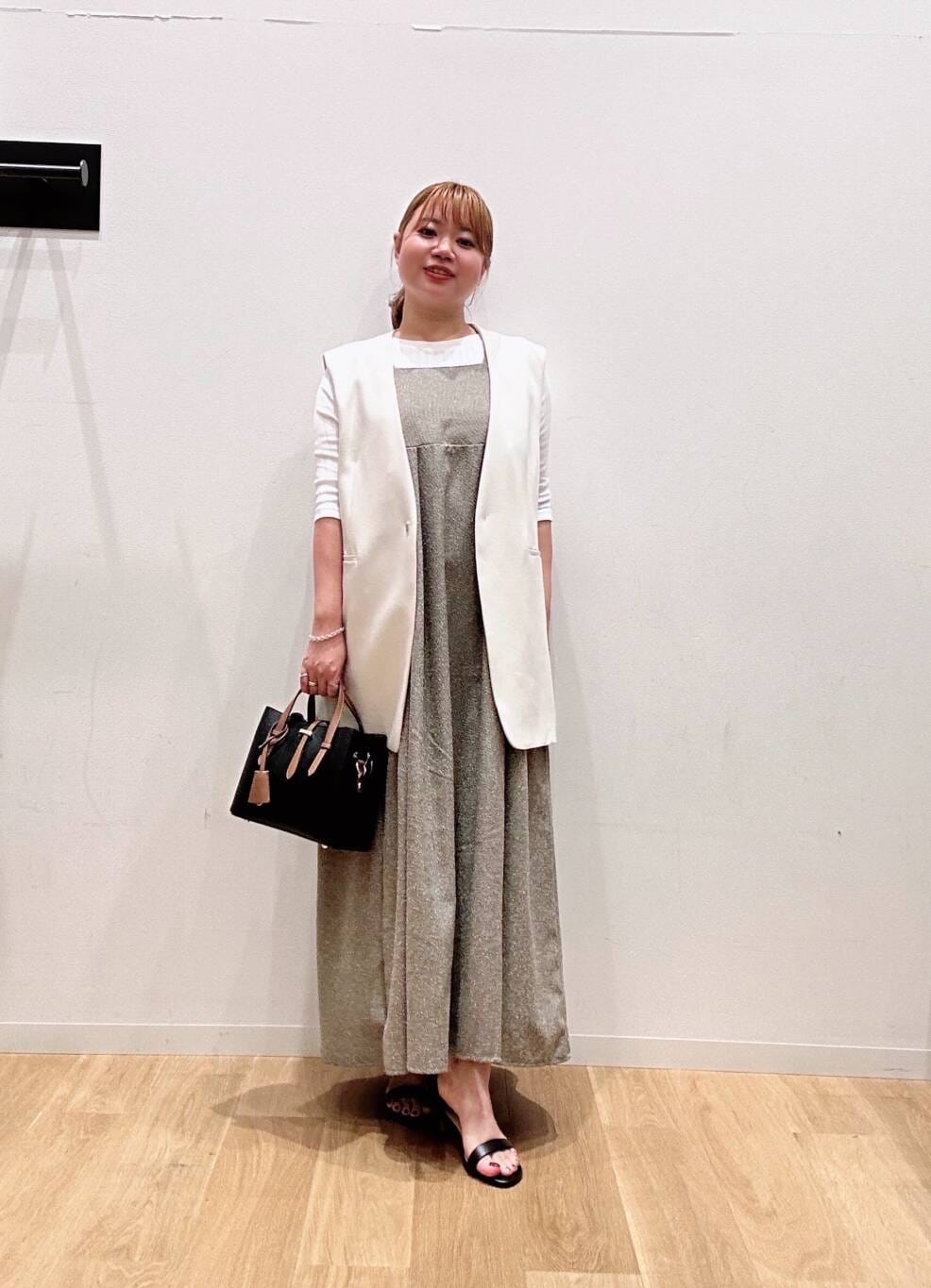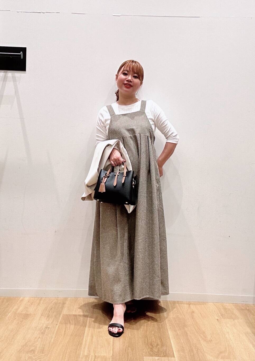 ワンピースは秋っぽい生地感で暑い時期はTシャツやブラウス、肌寒くなる時期はカットソーやニットをインナーで合わせると長く着用出来ます🥹