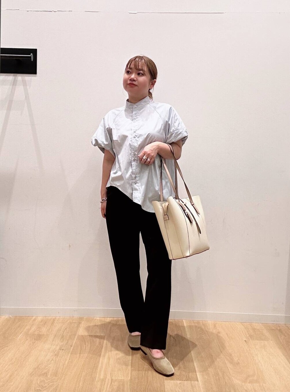 ブラウスは綿ナイロン生地がオンオフ兼用で着用できる万能アイテムです😊
