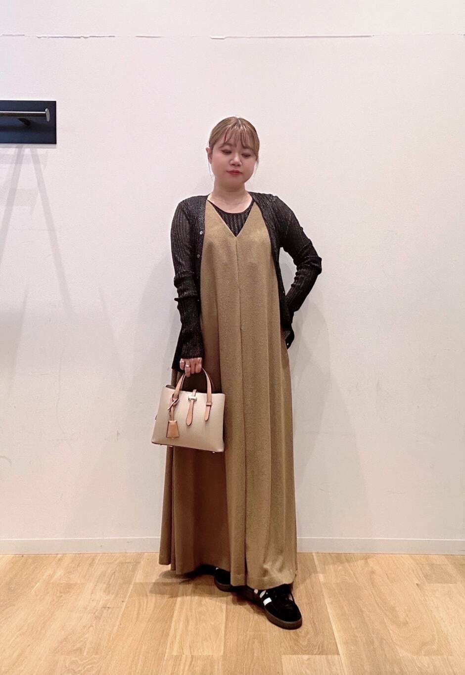 カーディガンとタンクトップは同素材なので単品で着たりセットで着合わせても◎