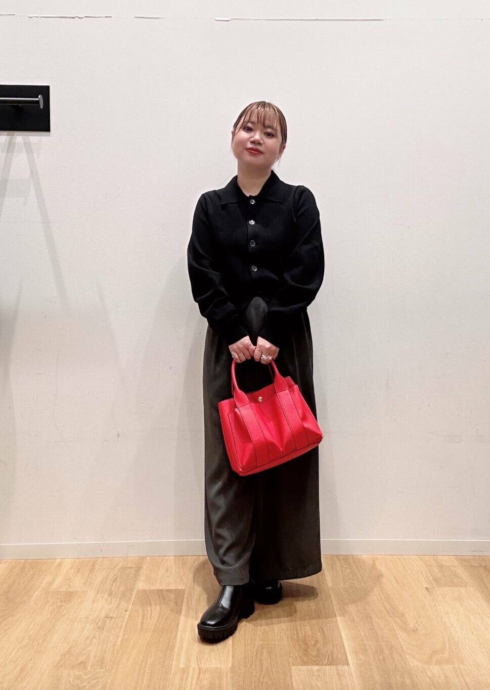 シャツカラーのカーディガンが羽織ったりトップスとして着れる万能アイテム🧡