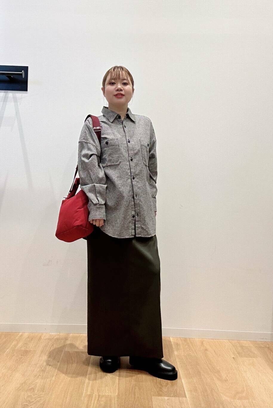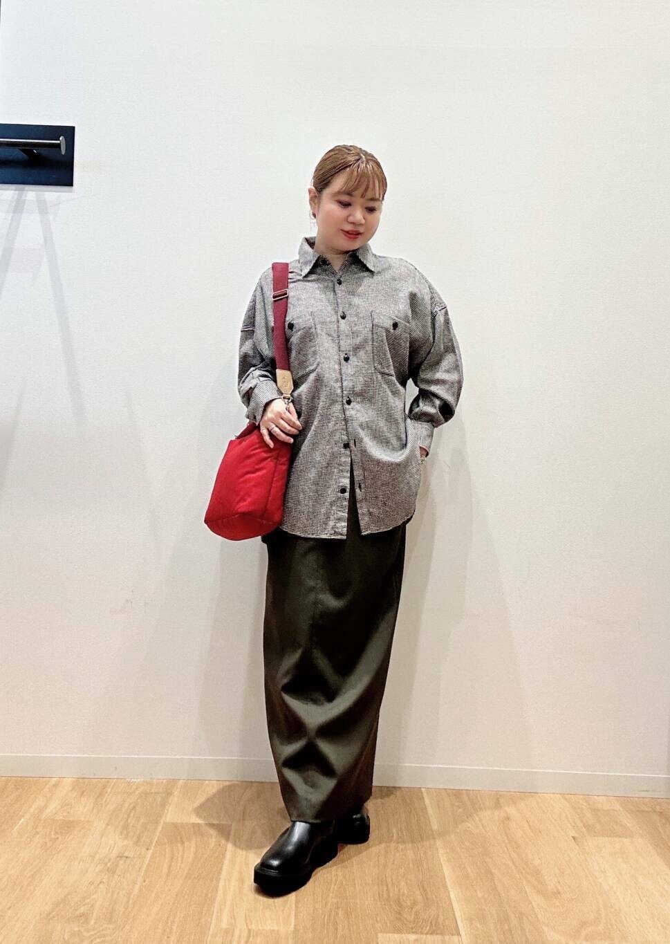 キモウ素材のシャツと予約商品のイージースカートのコーディネートです✨☺️