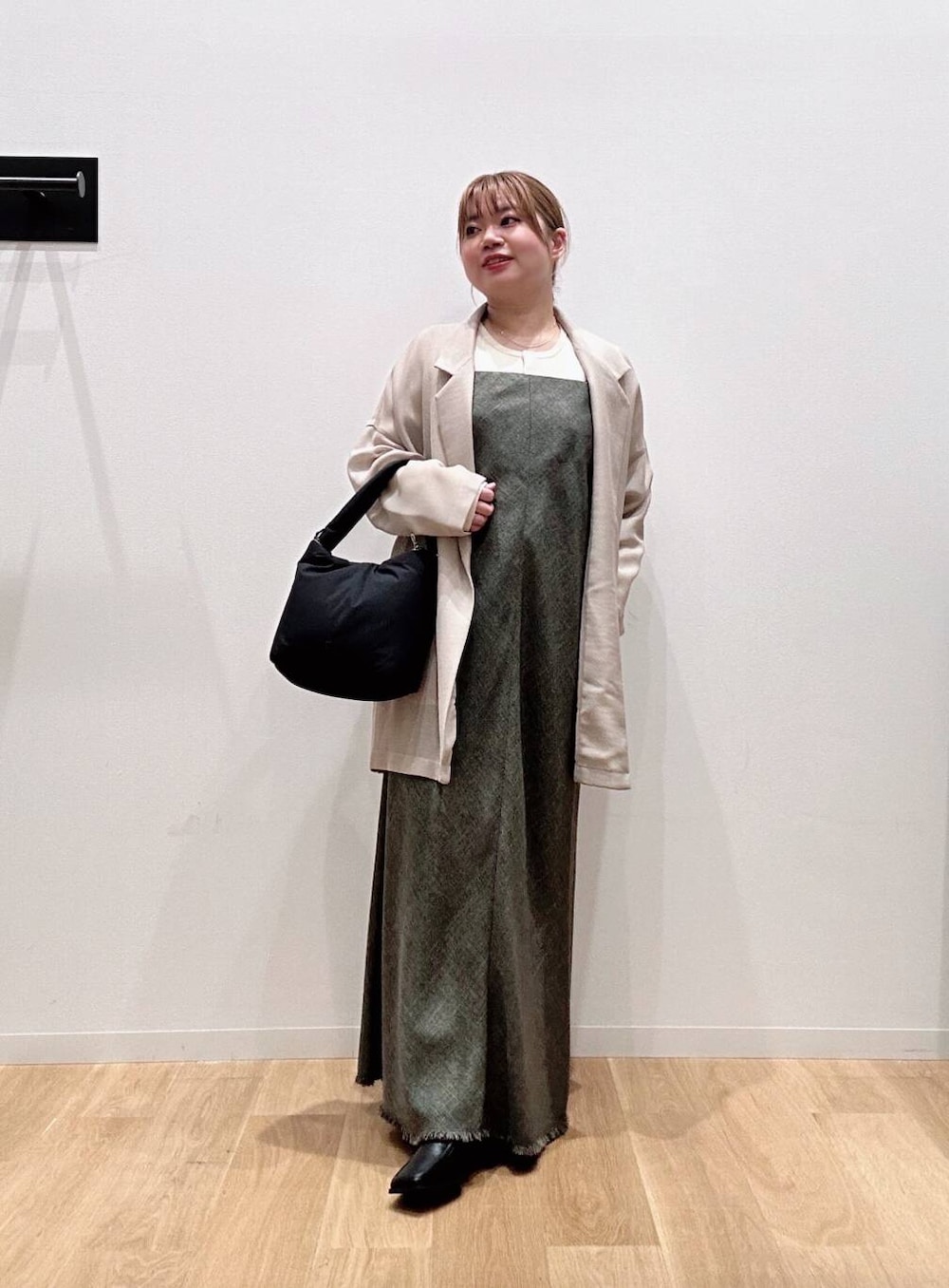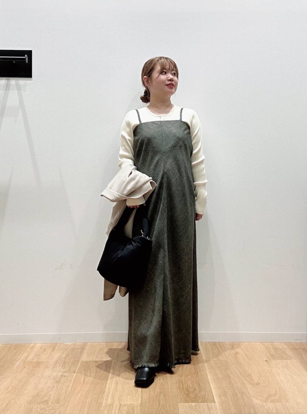 インナーのヘンリーネックのリブニットはフィット感が程よく着心地がいいです🙆♀️🙆♀️