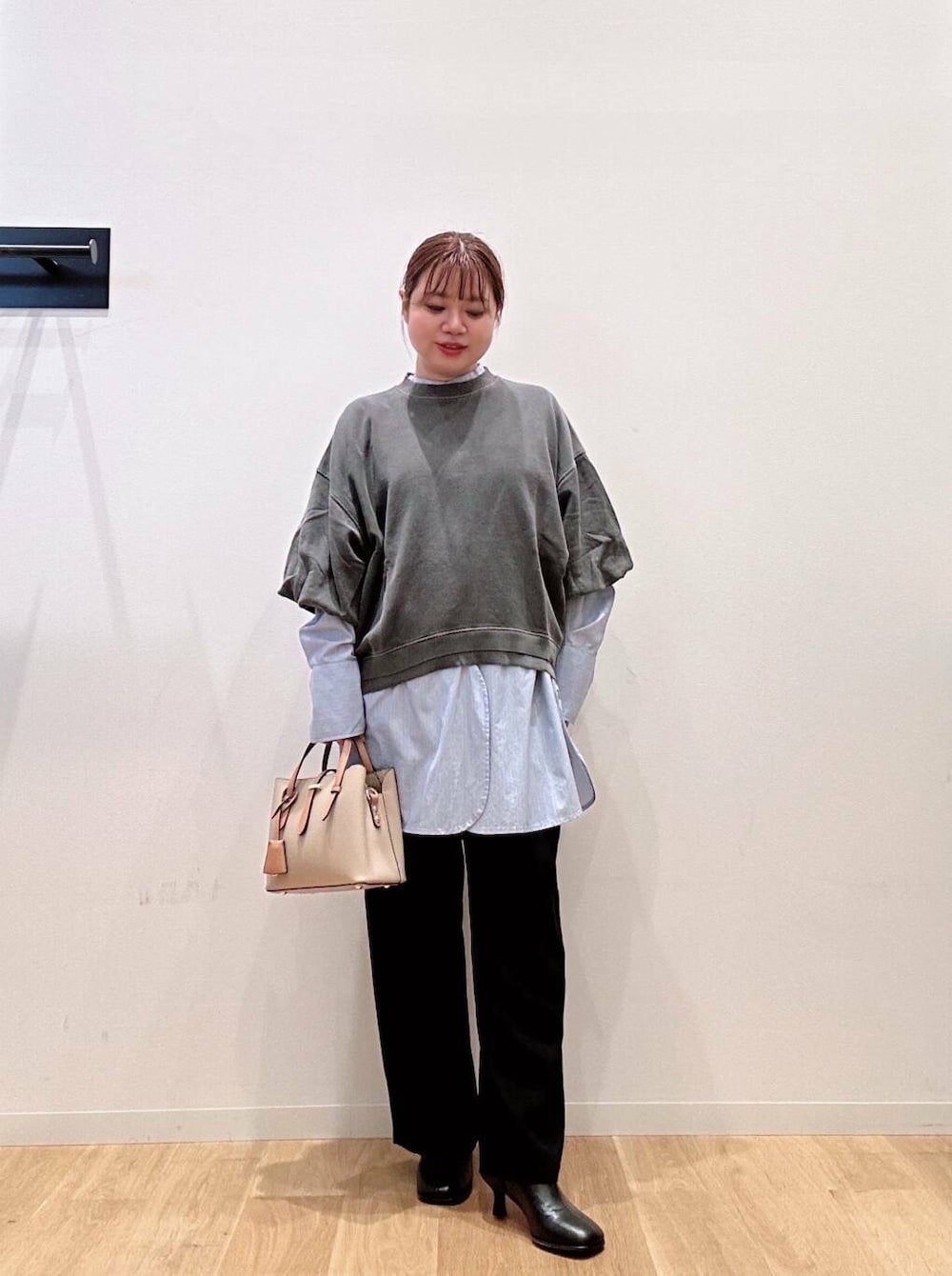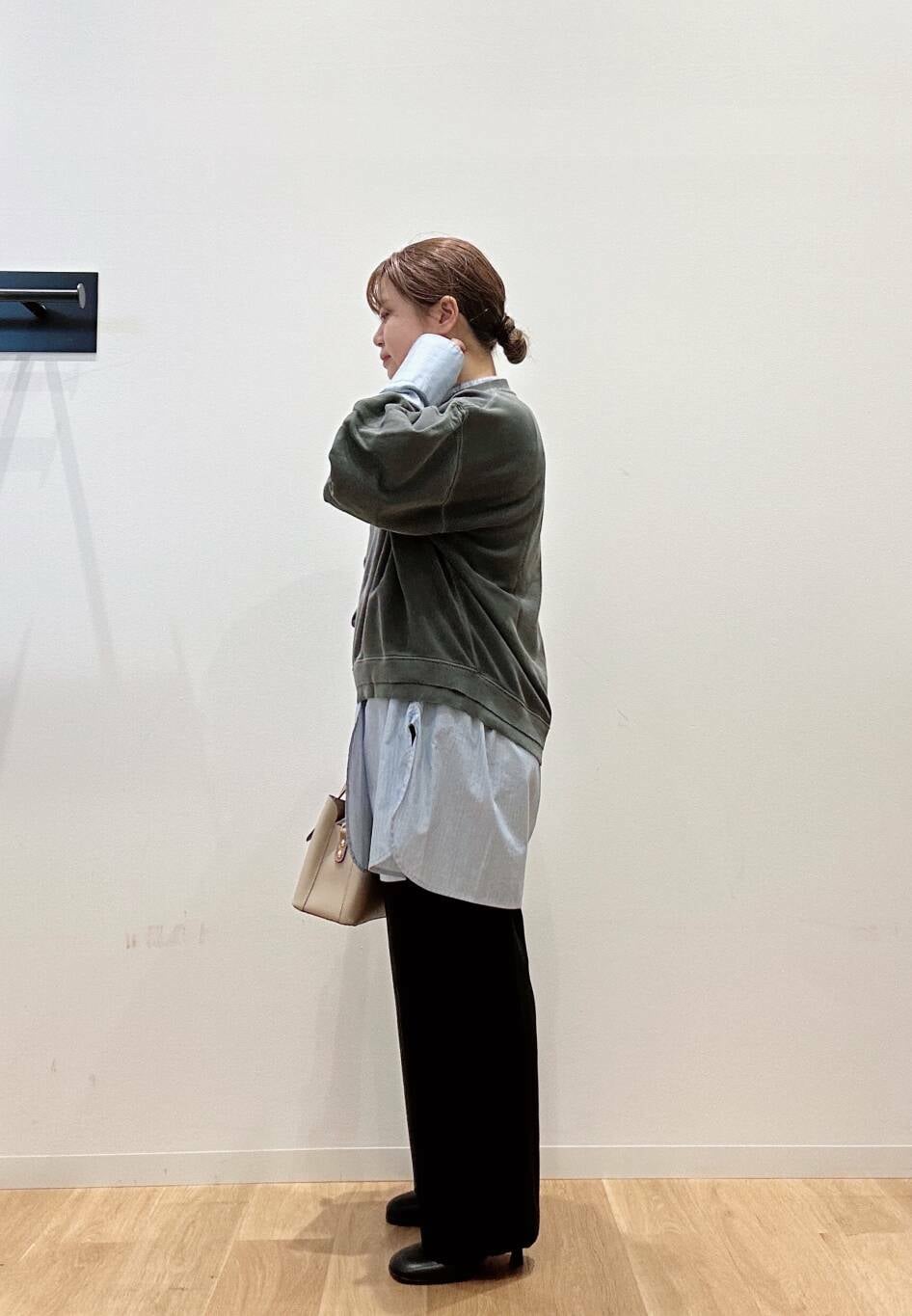 トップスは肘まで隠れる袖丈で身幅がありゆったりとしたシルエットです。