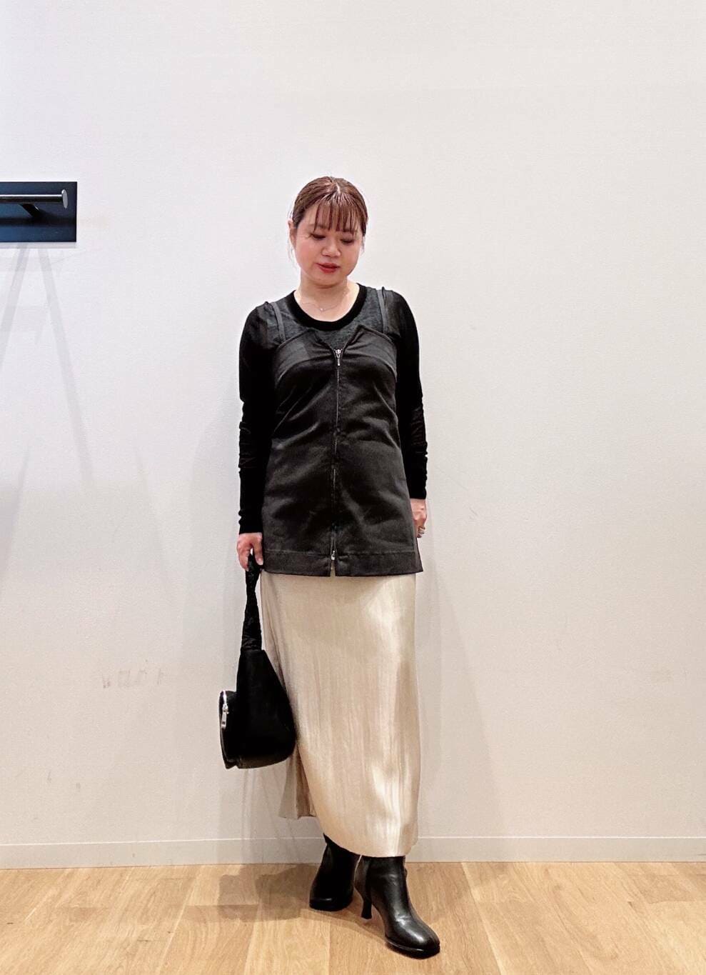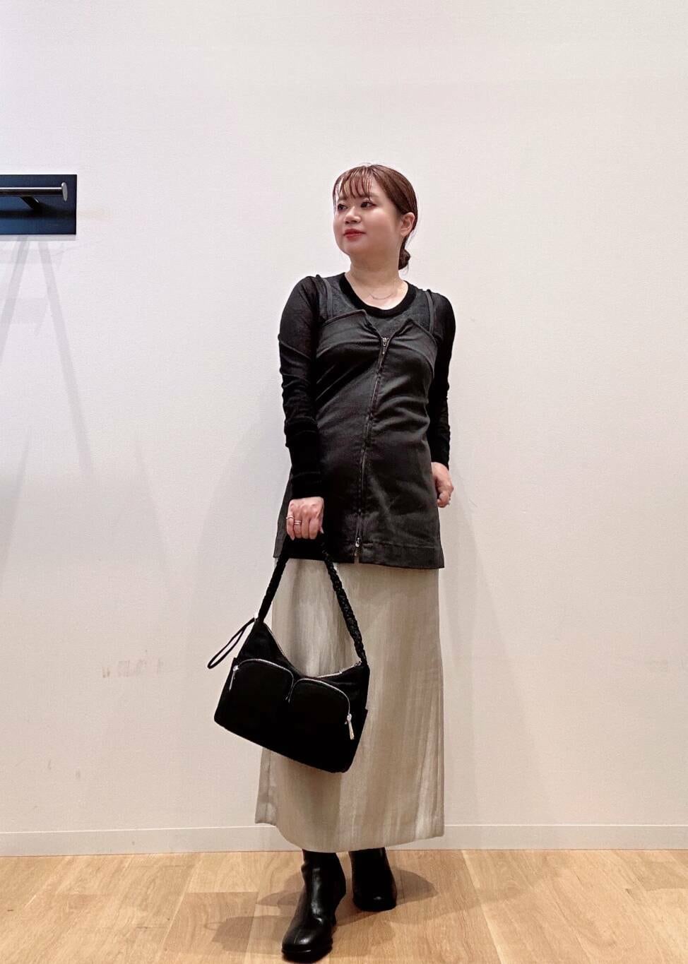 今回は同系色のブラックカラーのニットと合わせました。