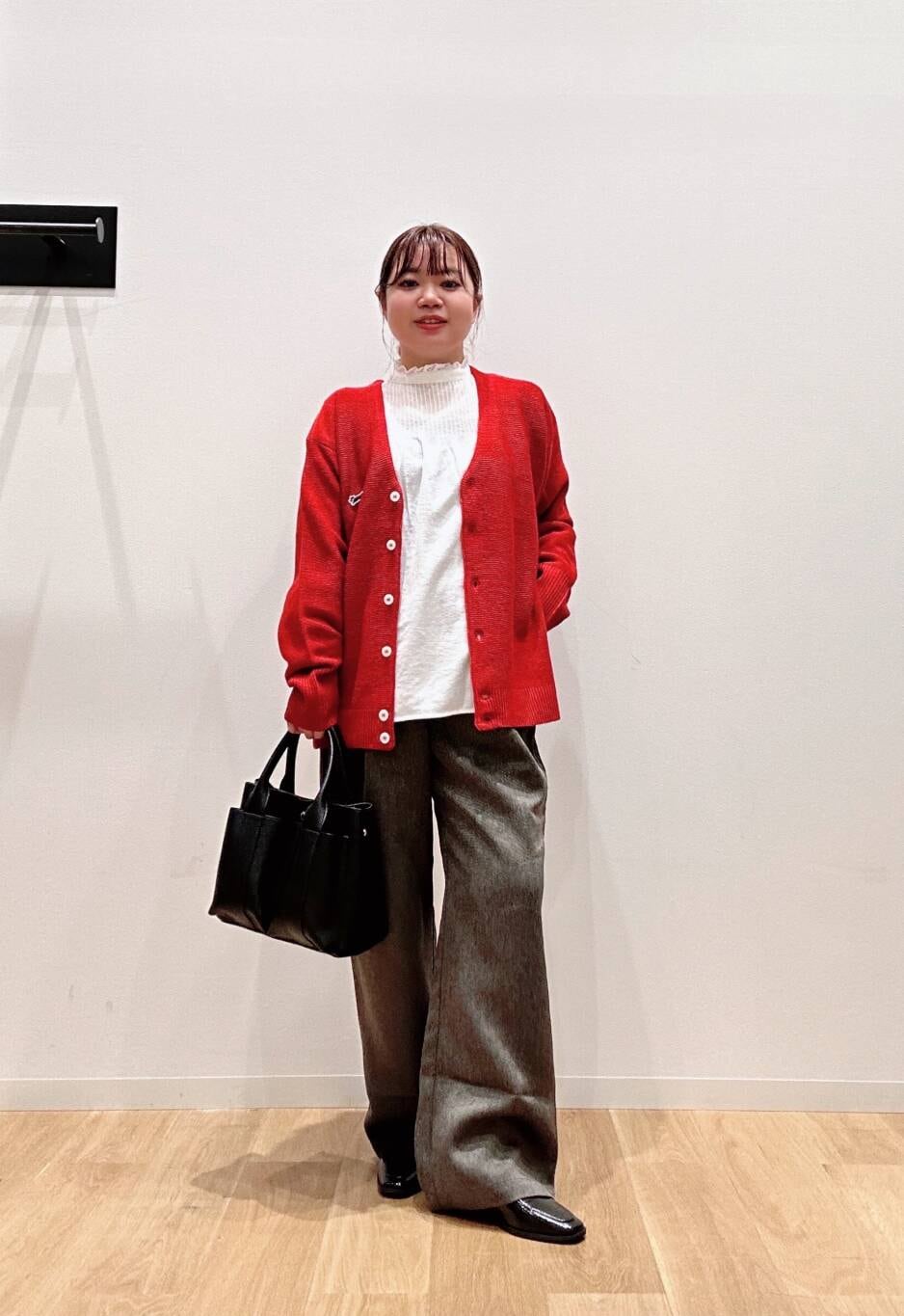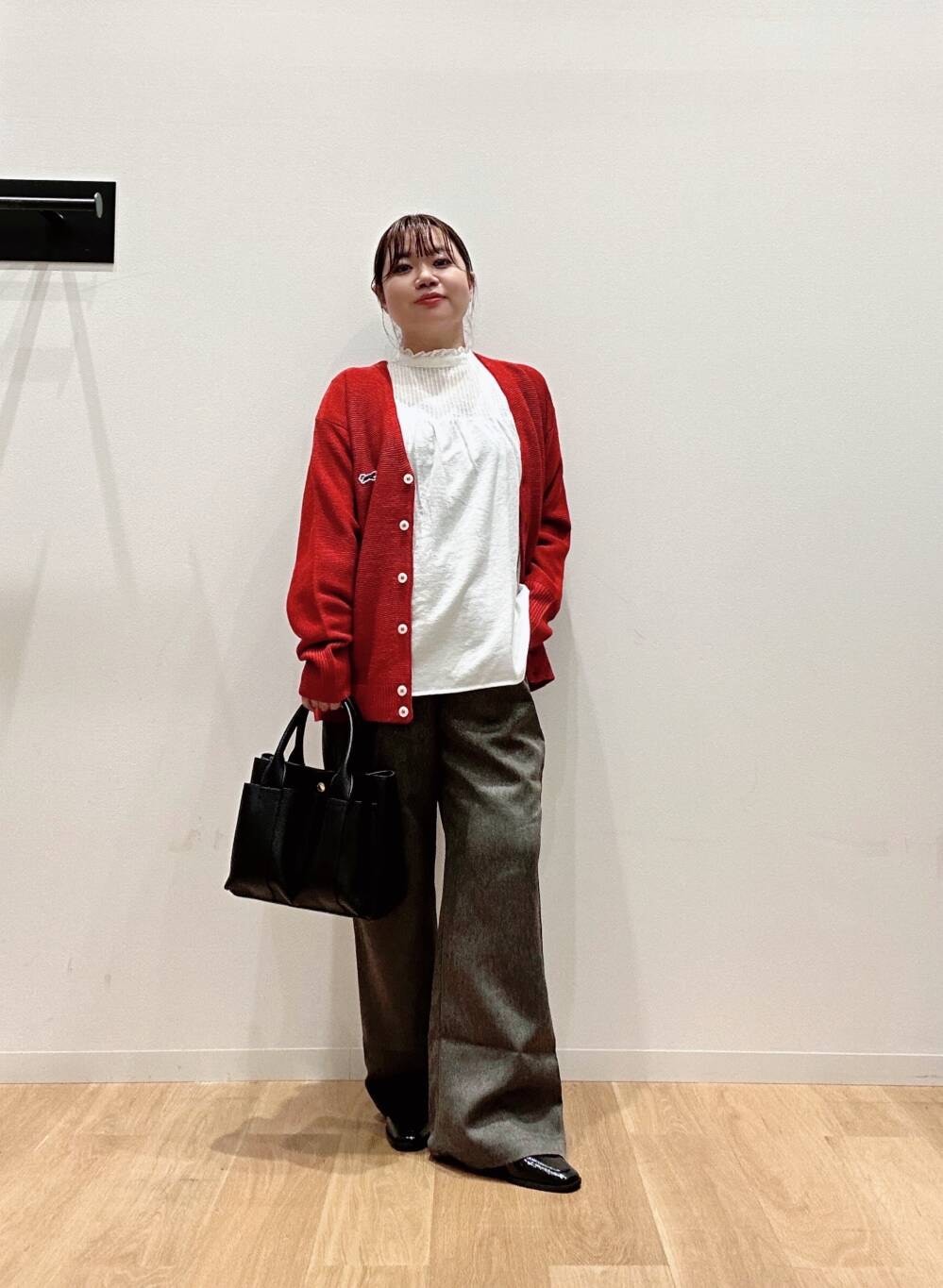 インナーにはスタンドカラーブラウスを着用してます。首元のフリルがエレガント🧡✨