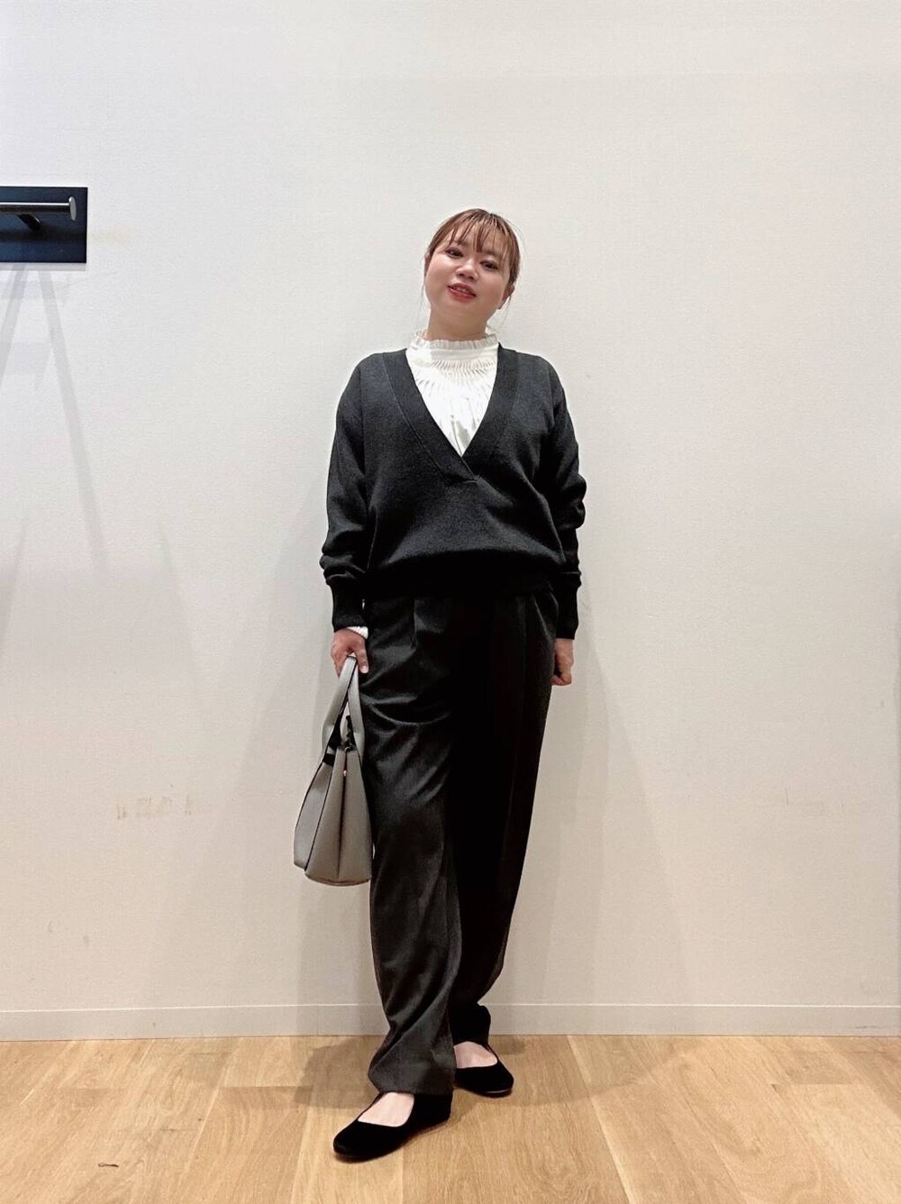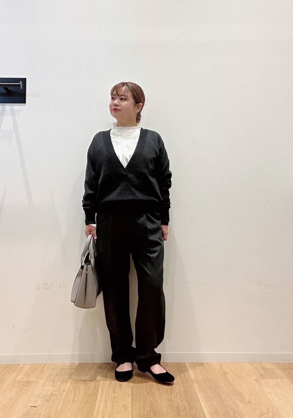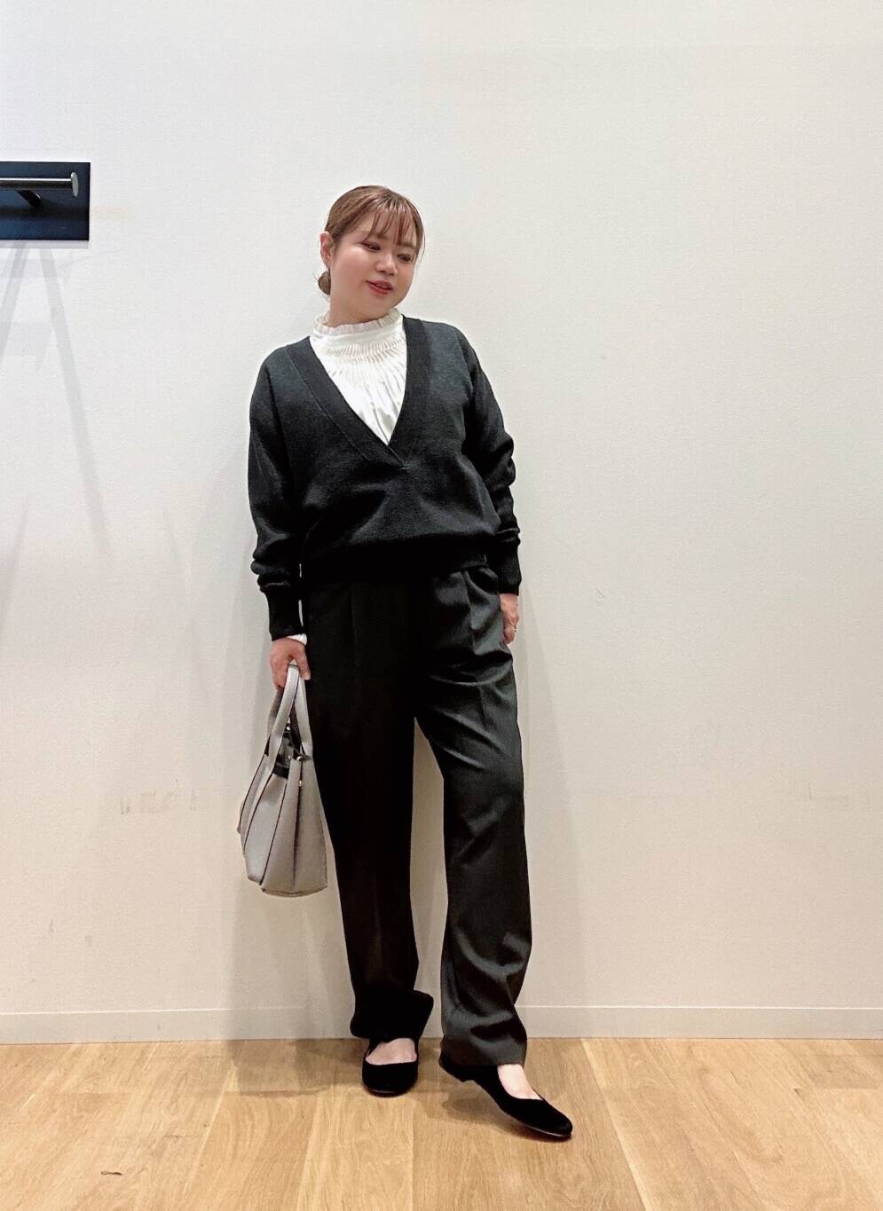 ニットは深めのVラインがインナーと合わせやすいデザインになっていてシンプルで可愛いです❤️😍