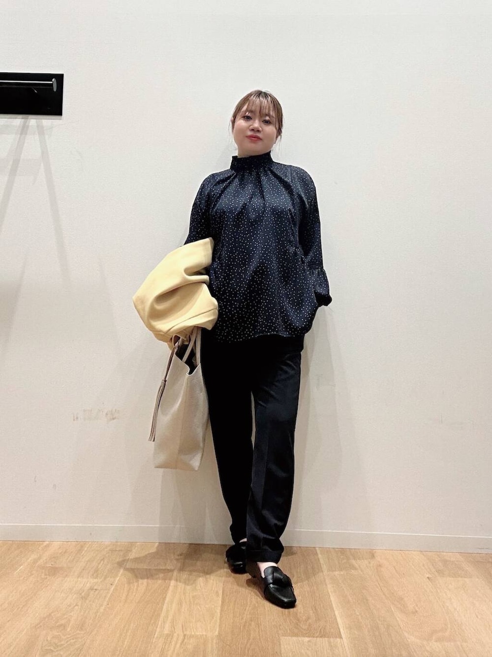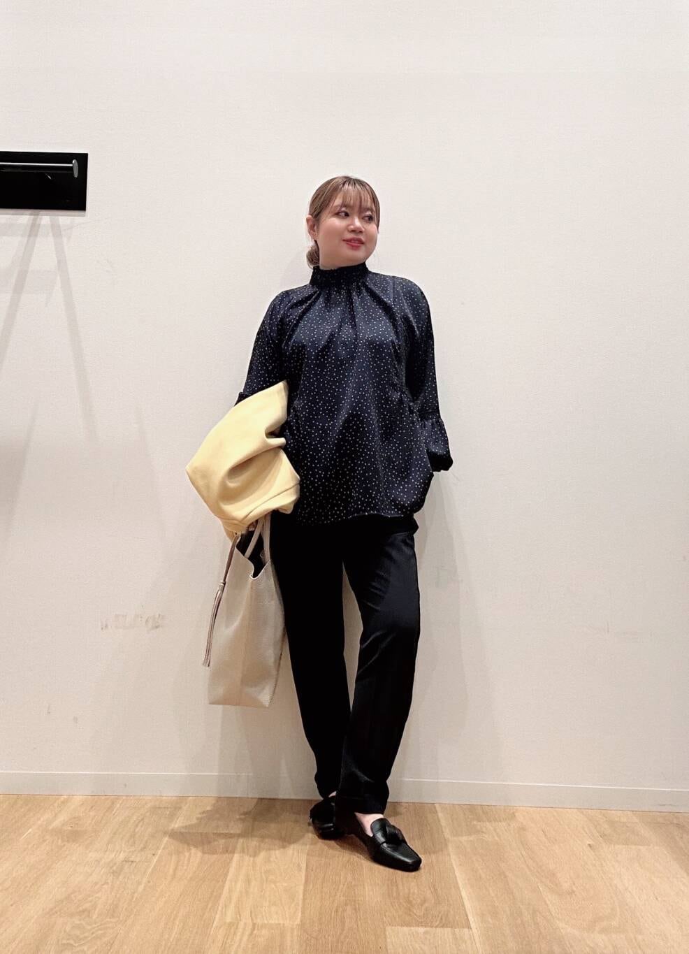 ブラウスはROSSOの商品です💓💓ドット柄がエレガント過ぎずに一枚でキマるデザインです😄