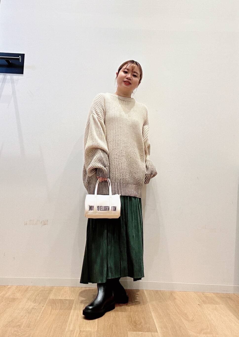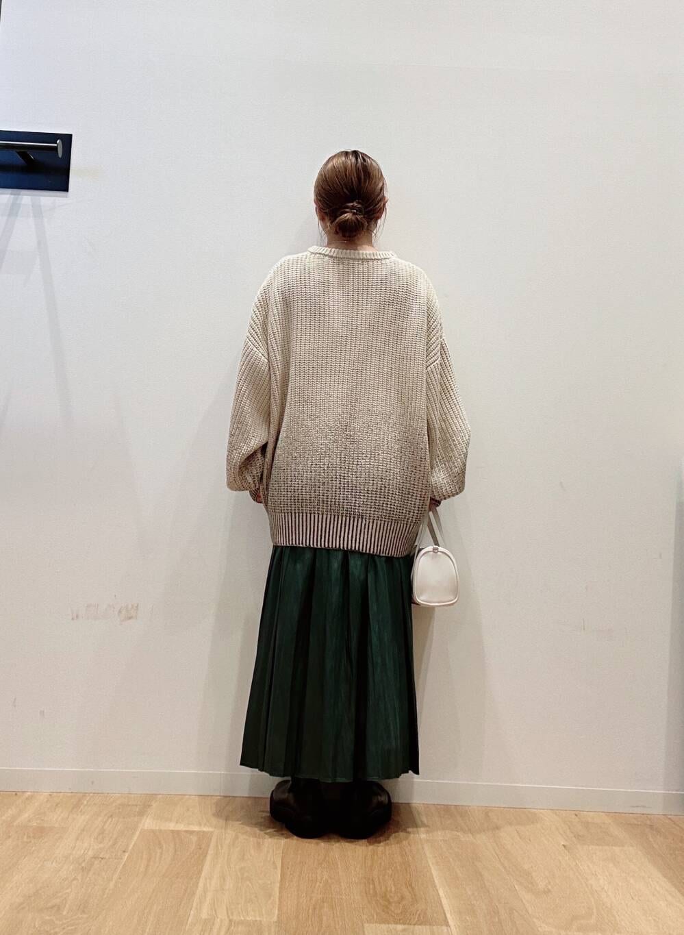 スカートは光沢感のある生地でウエストゴムなのでラクチンです🙌☺︎