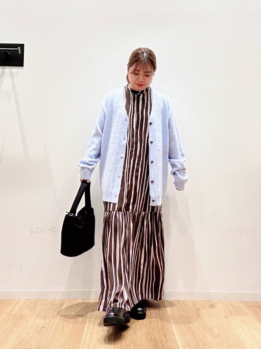 別注カーディガンとストライプワンピースでコーディネートしてみました🍓🍓