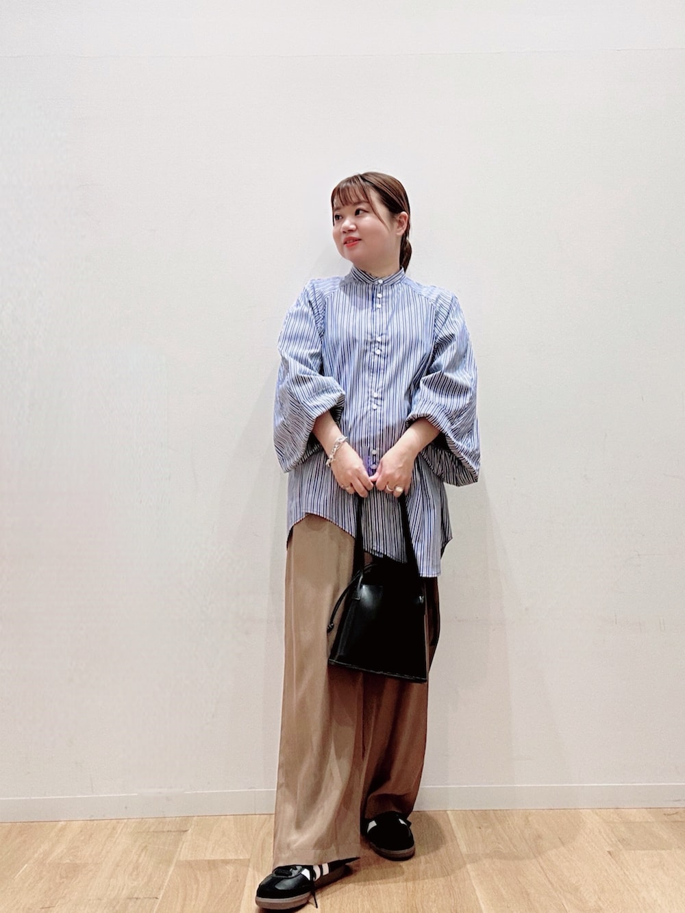 シャツはボリューム袖になっていて体型がひびきにくいシルエット🎀