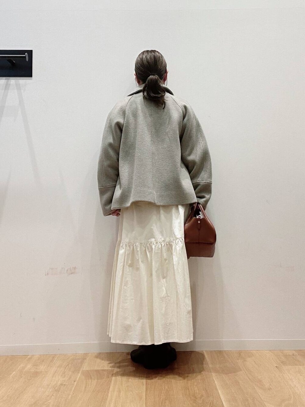 同系色でロングシーズン使えるティアードスカートを着用してます🫡