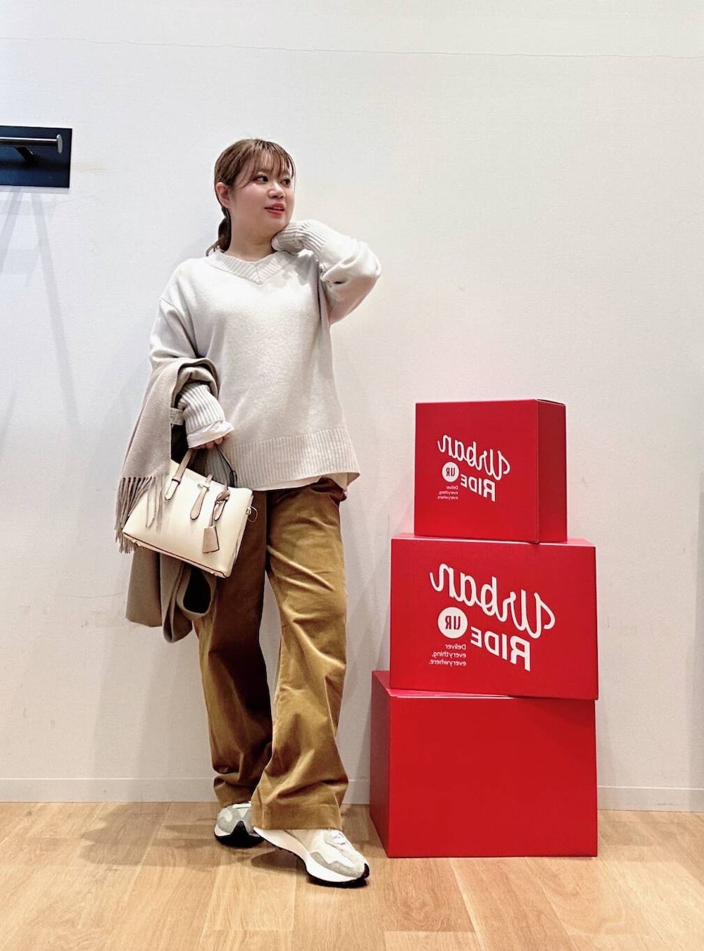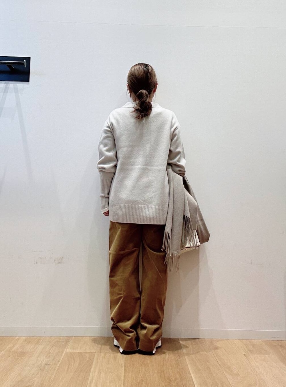 カシミア混ニットはお尻まで隠れる着丈とVネックが魅力的なデザイン🎯🎯✨