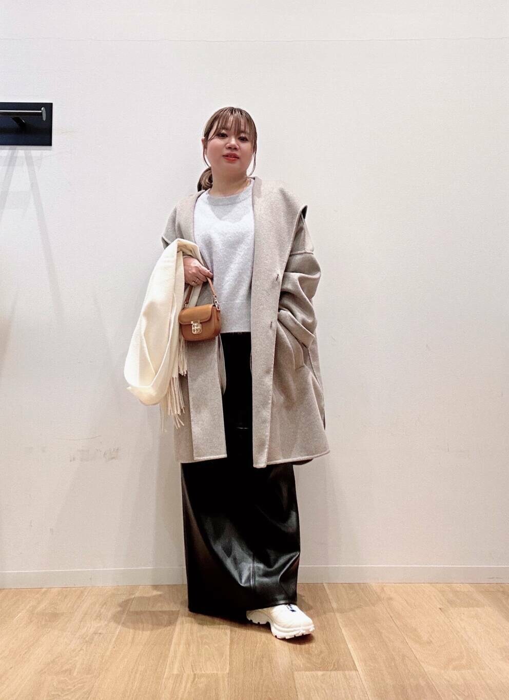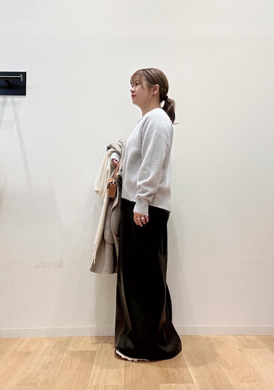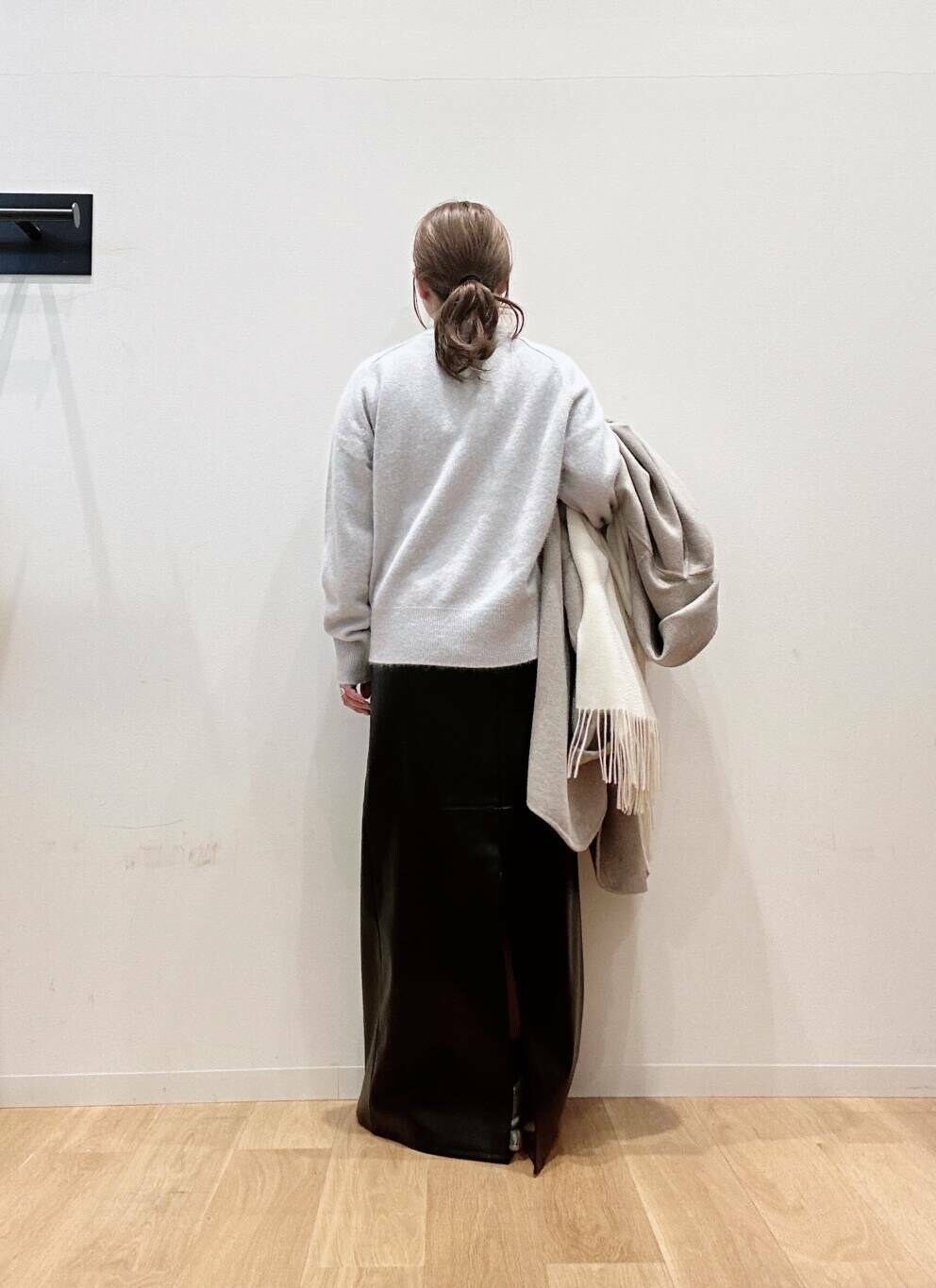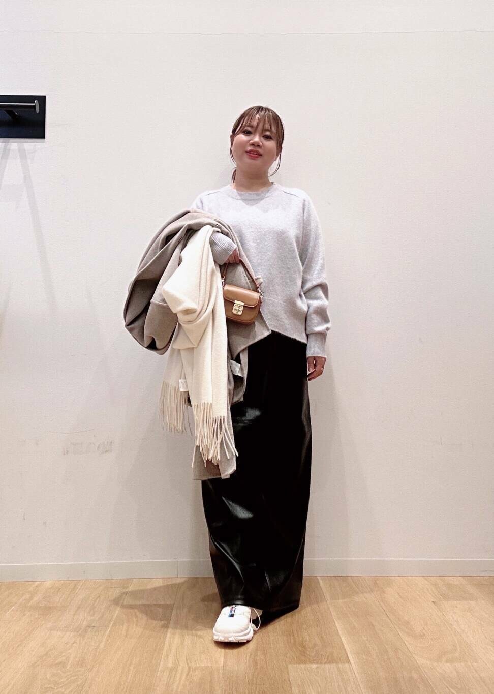 コートを脱いだ後も着映えするラメニットとレザーマキシスカートでコーディネートしました🪇🎺