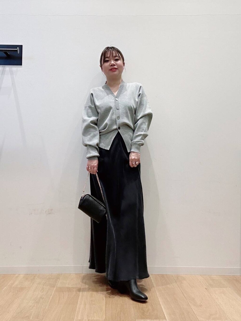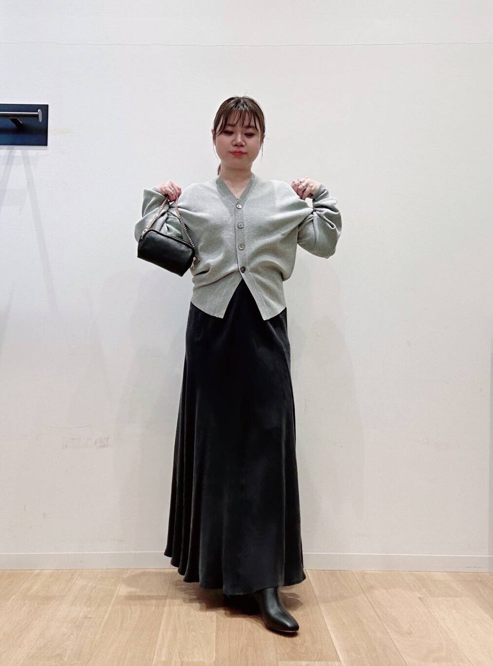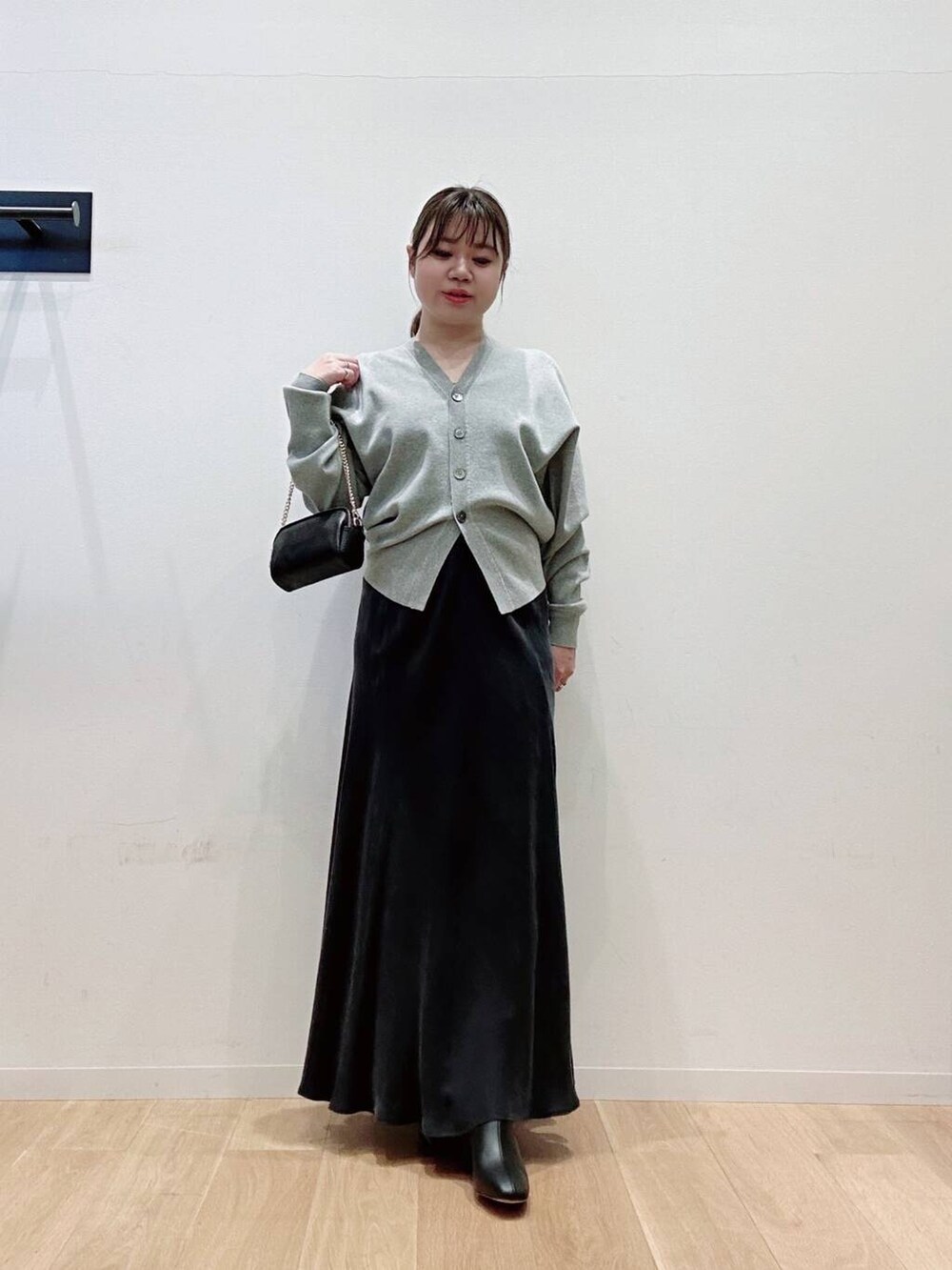 カーディガンはスウェット風の素材で着心地◎