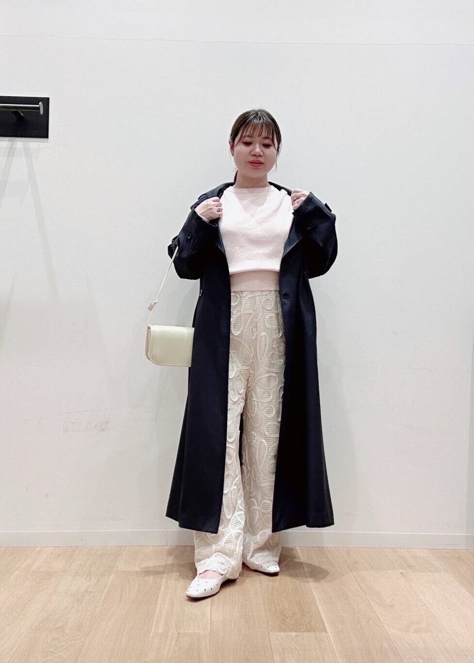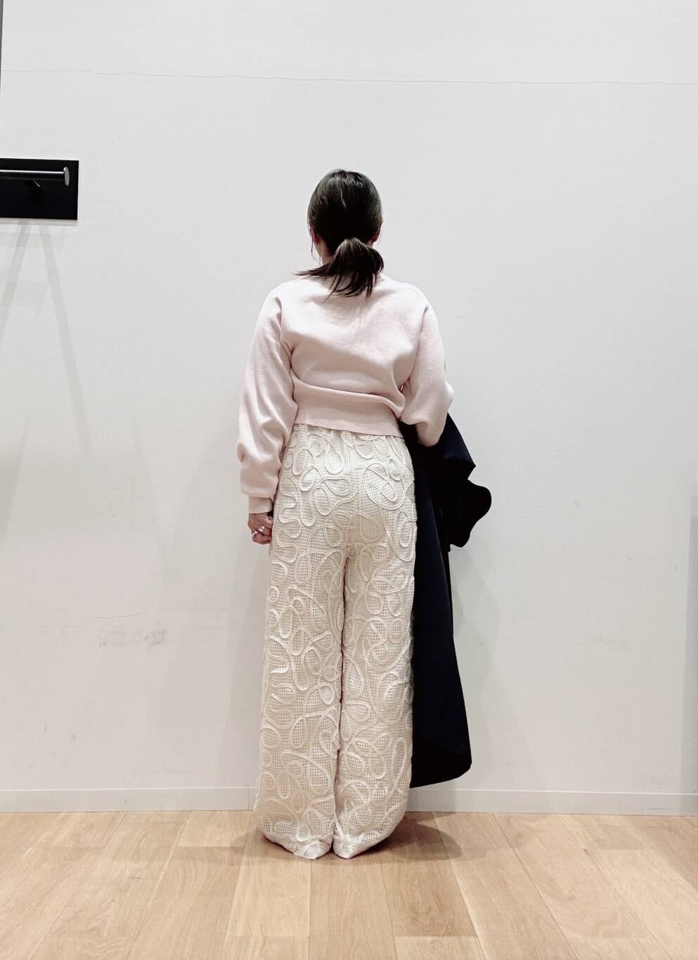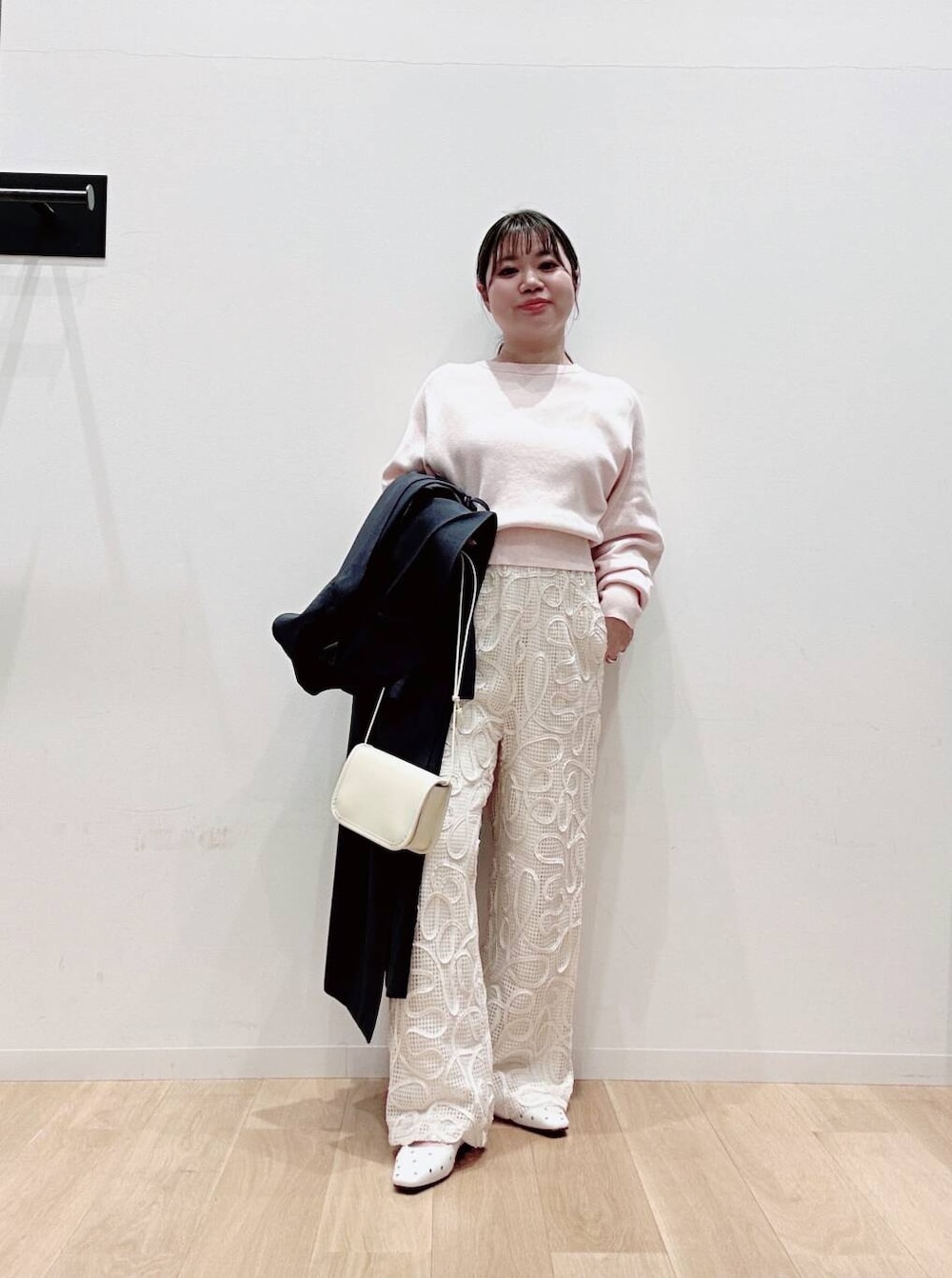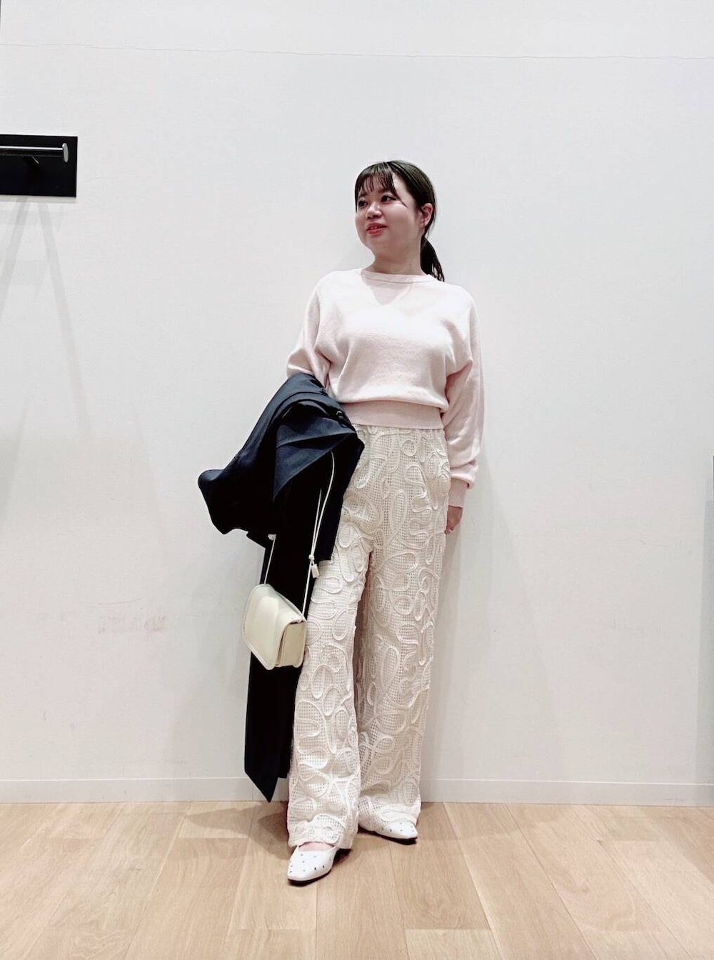 ピンクカラーのニットはショート丈でコンパクトサイズなのでボトムをえらびません🪽🪽