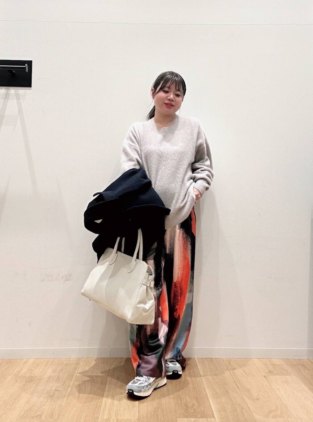 今回は春物ラクチンワイドパンツに ニットとアウターを合わせてみました🟠