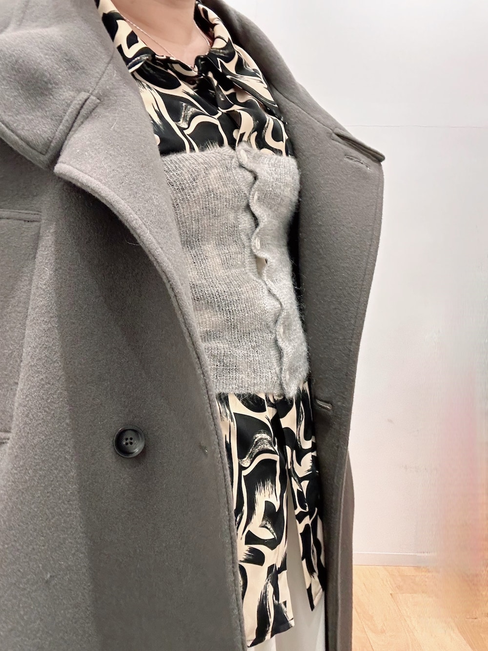 生地も柔らかく着丈が長過ぎないので小柄さんでも◎インナーのモヘアのキャミソールは新作☺️エアリーでフワフワ🪶