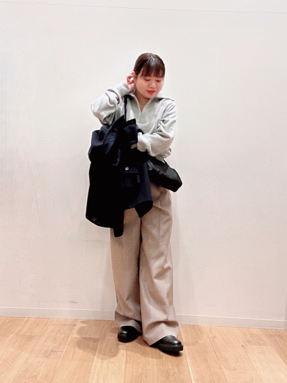 URBAN RESEARCHウールブレンドチェックワイドパンツ- 着用カラー: