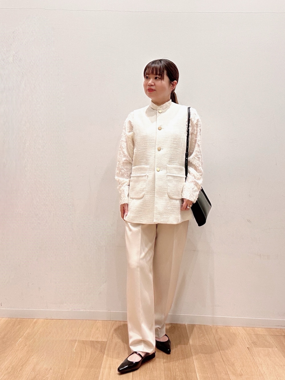 ベストはショート丈でスッキリ、金ボタンがさりげなく可愛いです❤️