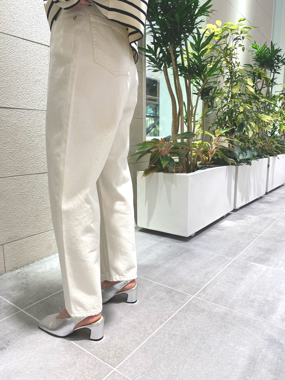 デニムは太もも周りはゆったり、足首はすっきりなシルエットでスタイルアップ抜群です!
