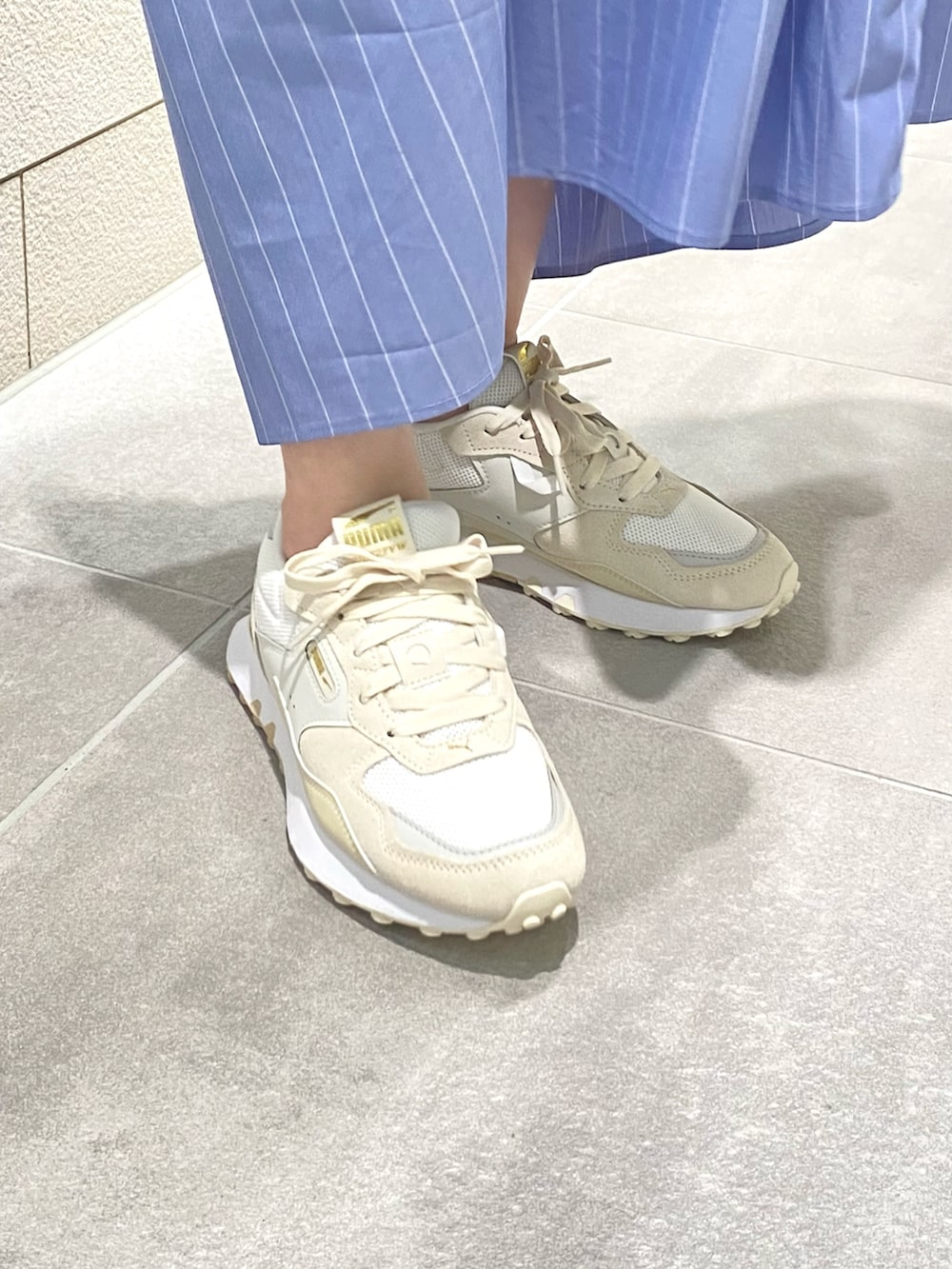 アイボリー系のカラーにゴールドのロゴがとてもかわいい!スニーカーは普段23cm着用でこちらも23cmのサイズでちょうど良かったです。