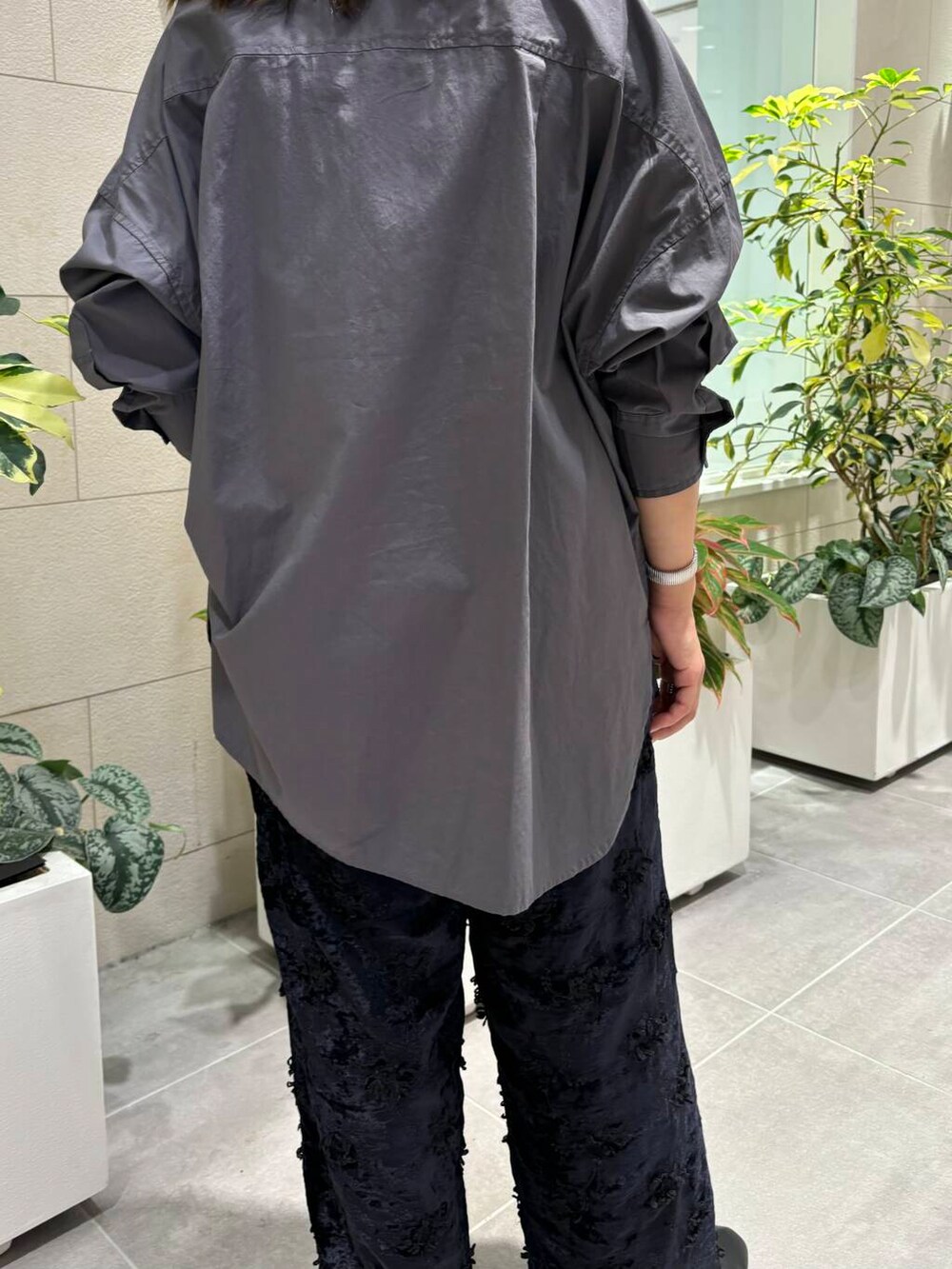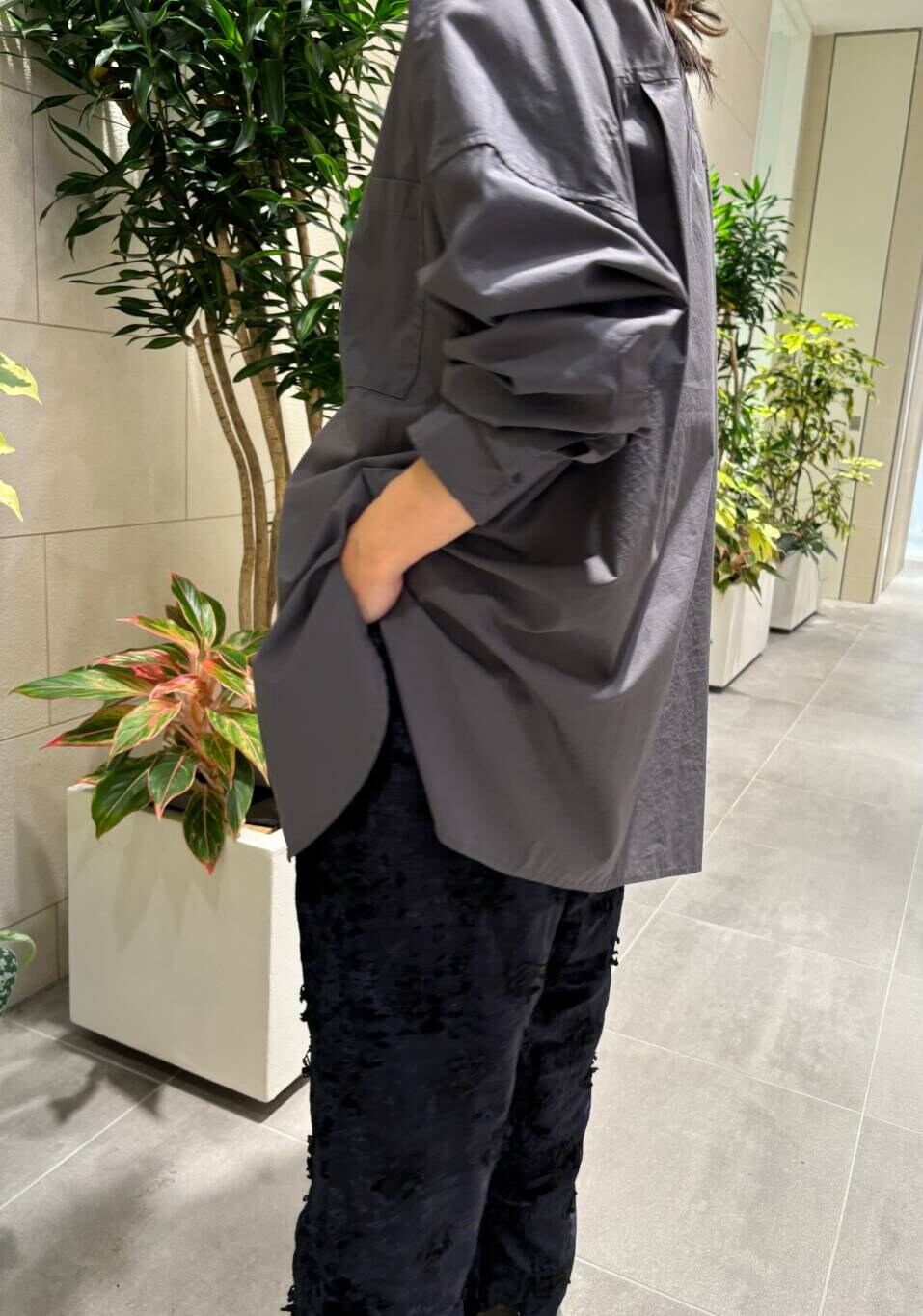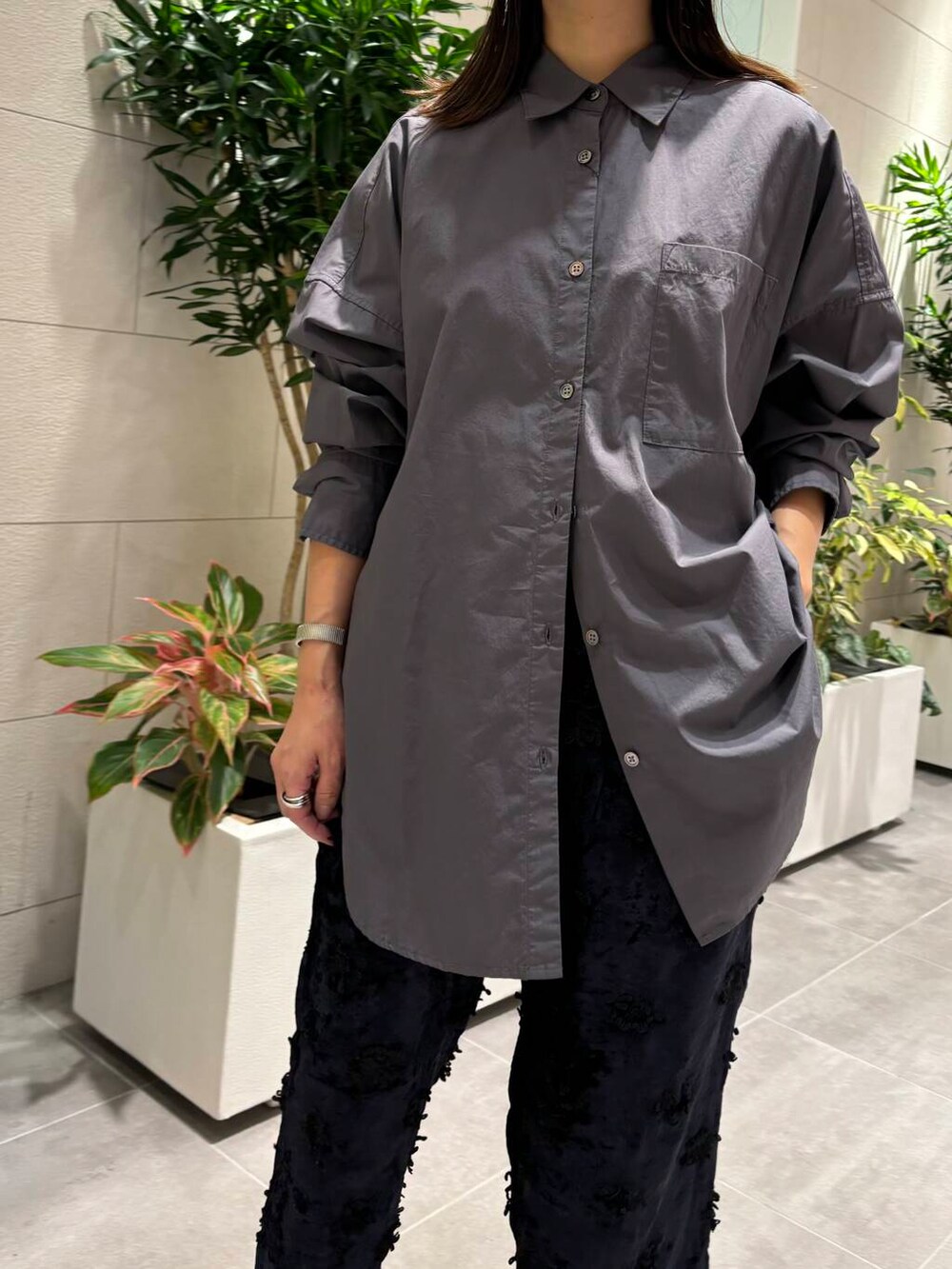こちらのシャツ、リアルバイアイテムなのですが、シルエットが綺麗なので低身長さんでも比較的バランス良くお召しいただけるかと思います^^