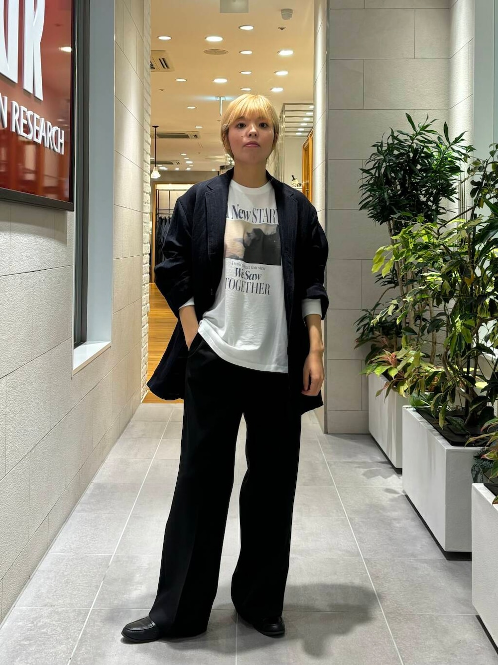 ストレートの形の綺麗なスラックスパンツと合わせて綺麗カジュアルに着こなすのもおすすめです🌸❤️