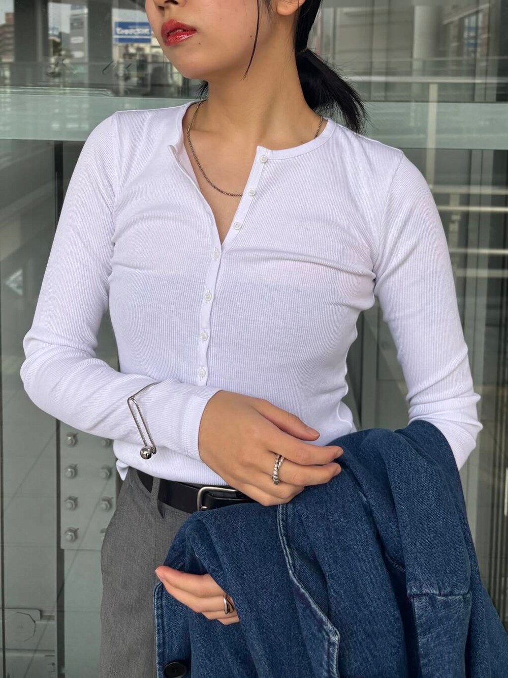 tops 一枚でもインナーでも着やすい一着、サイズ感は体にピッタリとそうサイズ感👌💙