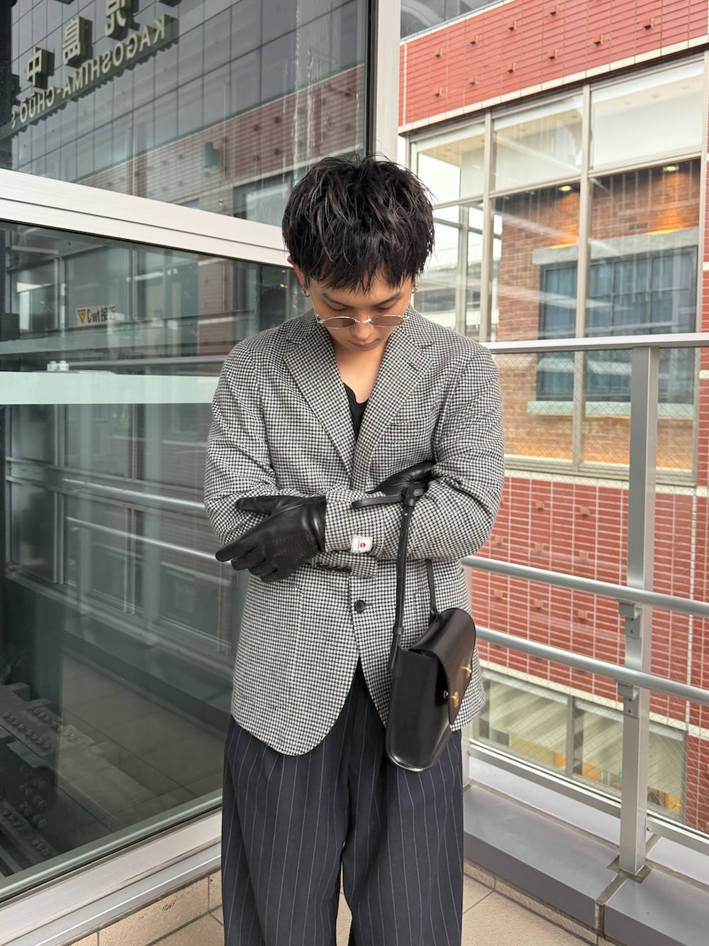 ブラックのグローブにPIENIのブラックのレザーバッグを持ち、かっこよさを意識しました。