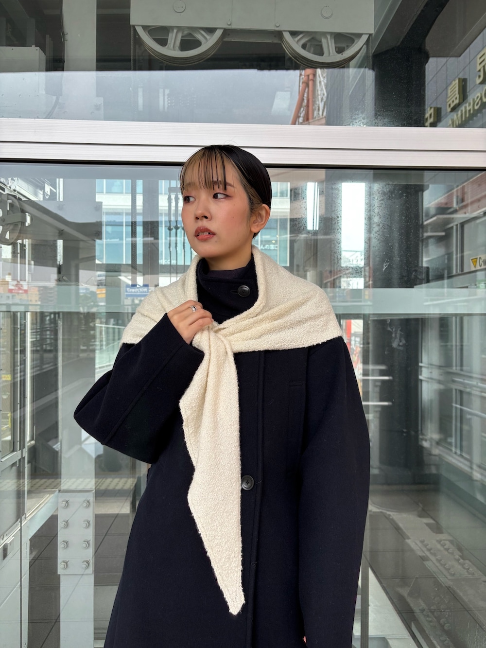 こちらのコートは比較的ゆったりとしたサイズ感の為、厚地のニットをインナーに着ても窮屈感なく使っていただけます◎