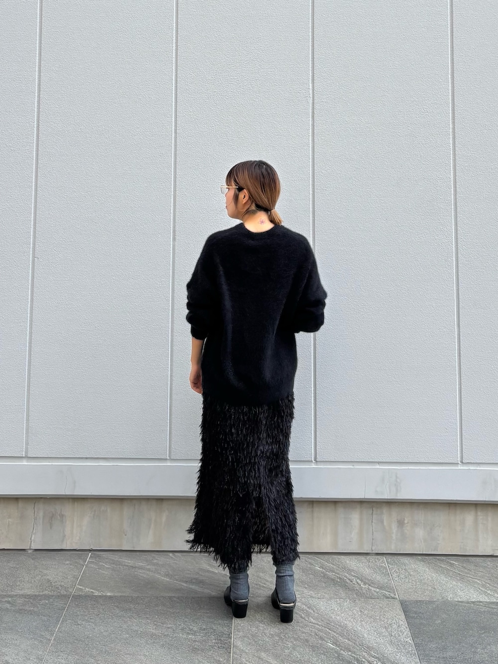 シャーリングの、綺麗なスカートも重くなりがちな秋冬の素材とマッチして合わせやすいです❣️