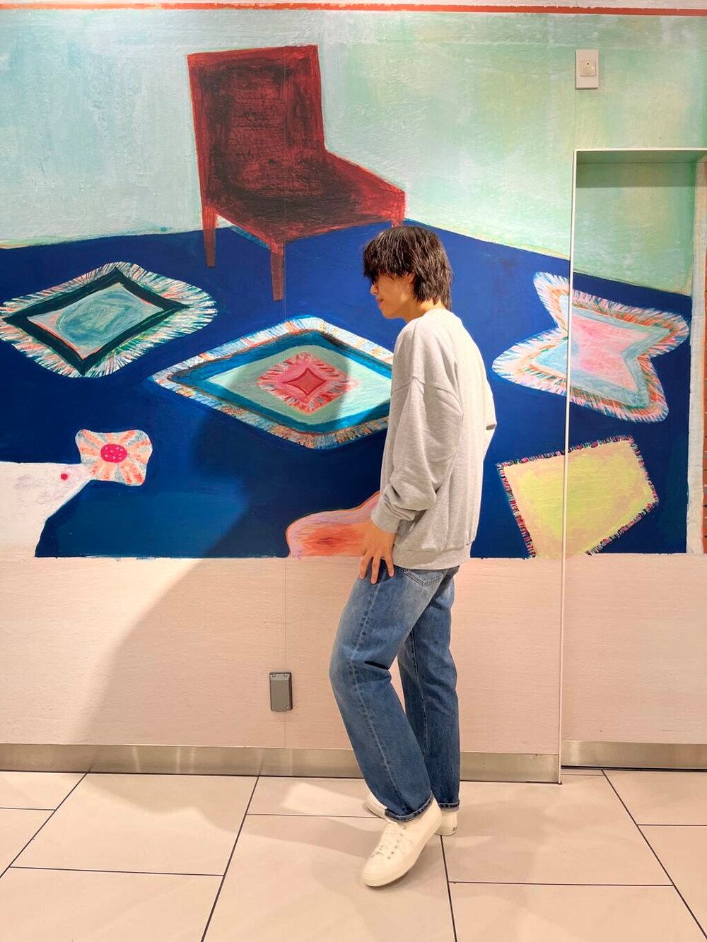 フィット感のあるスウェットにKAIHARADENIMを合わせました。