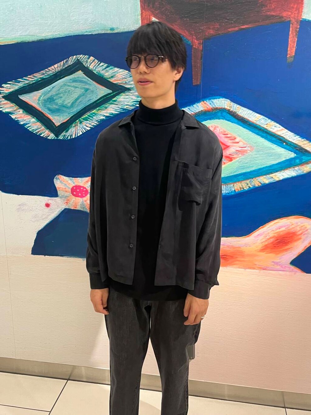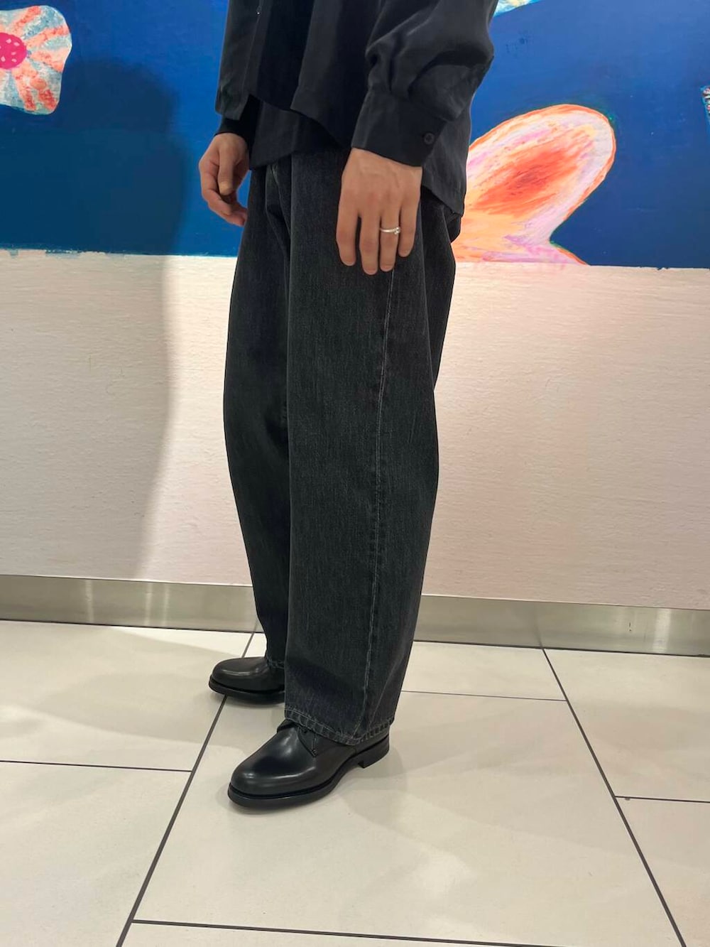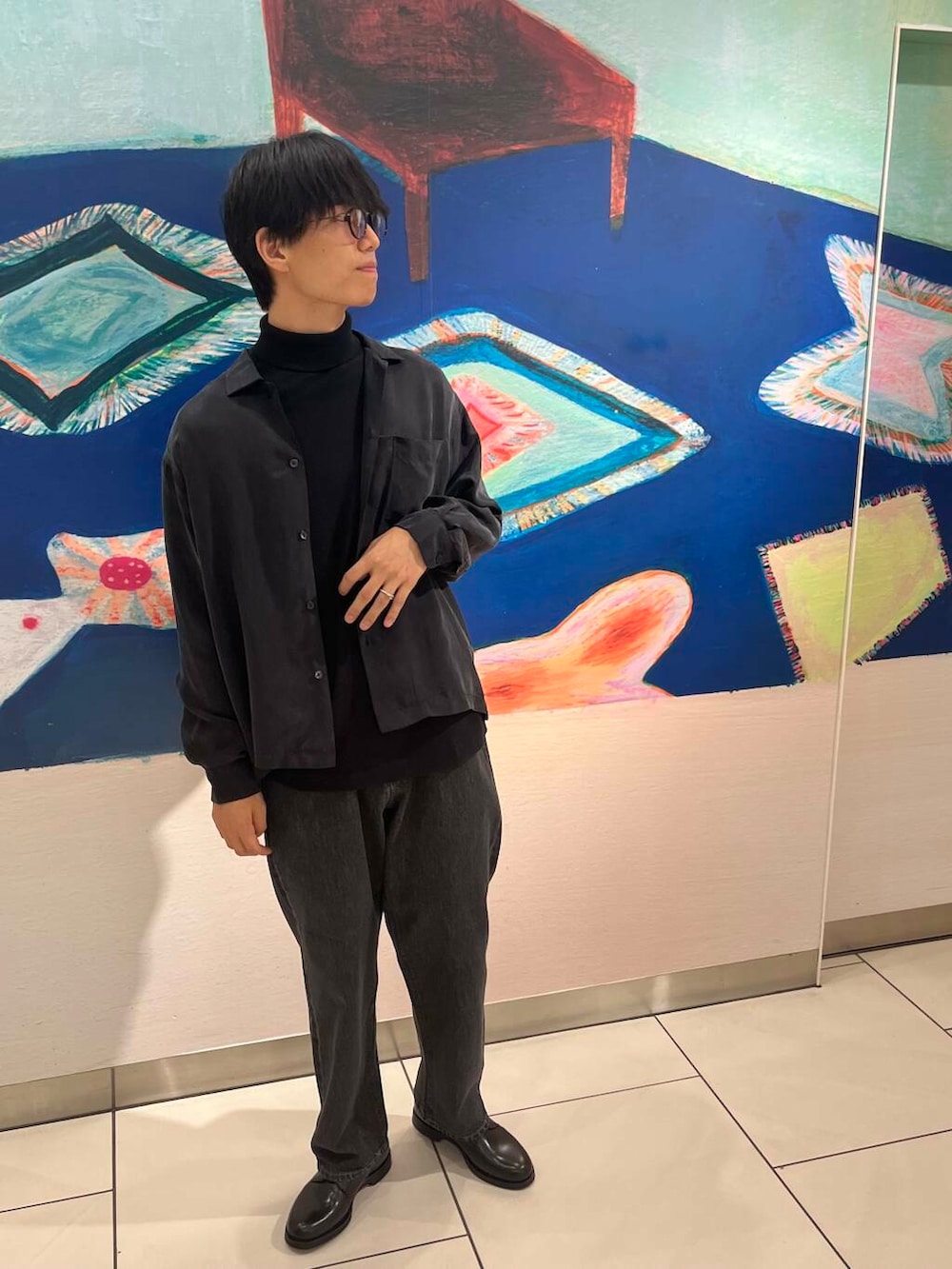 今回はキュブラという珍しい素材を使った弾力のあるシャツを中心にオールブラックで組んでみました。
