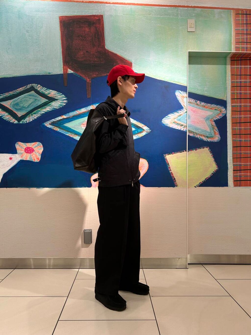 全身真っ黒コーデ(キャップだけ赤いですが)